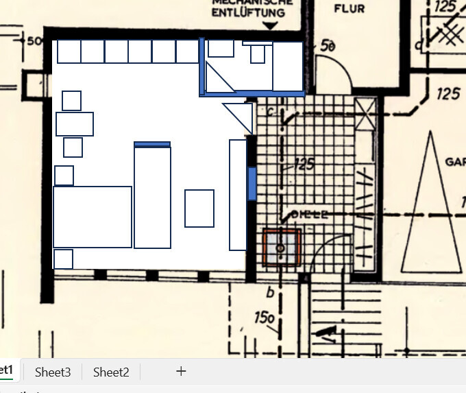 Da muß vermutlich nicht nur ich um Erläuterung bitten: französisches Bett mit Kücheninsel am Fußende, oder was soll Dein Picasso darstellen ?Nee. Das ist das sofa. Da kann man dann vom Bett aus TV schauen. Oder eben auch vom bequemen Sofa aus. Mein erstes Apartment in München war auch nicht größer und wir haben da zu zweit gelebt.Ich habe das schon geplant, da wuste ich noch nicht, das der TE den Flur mit nutzen kann oder will.