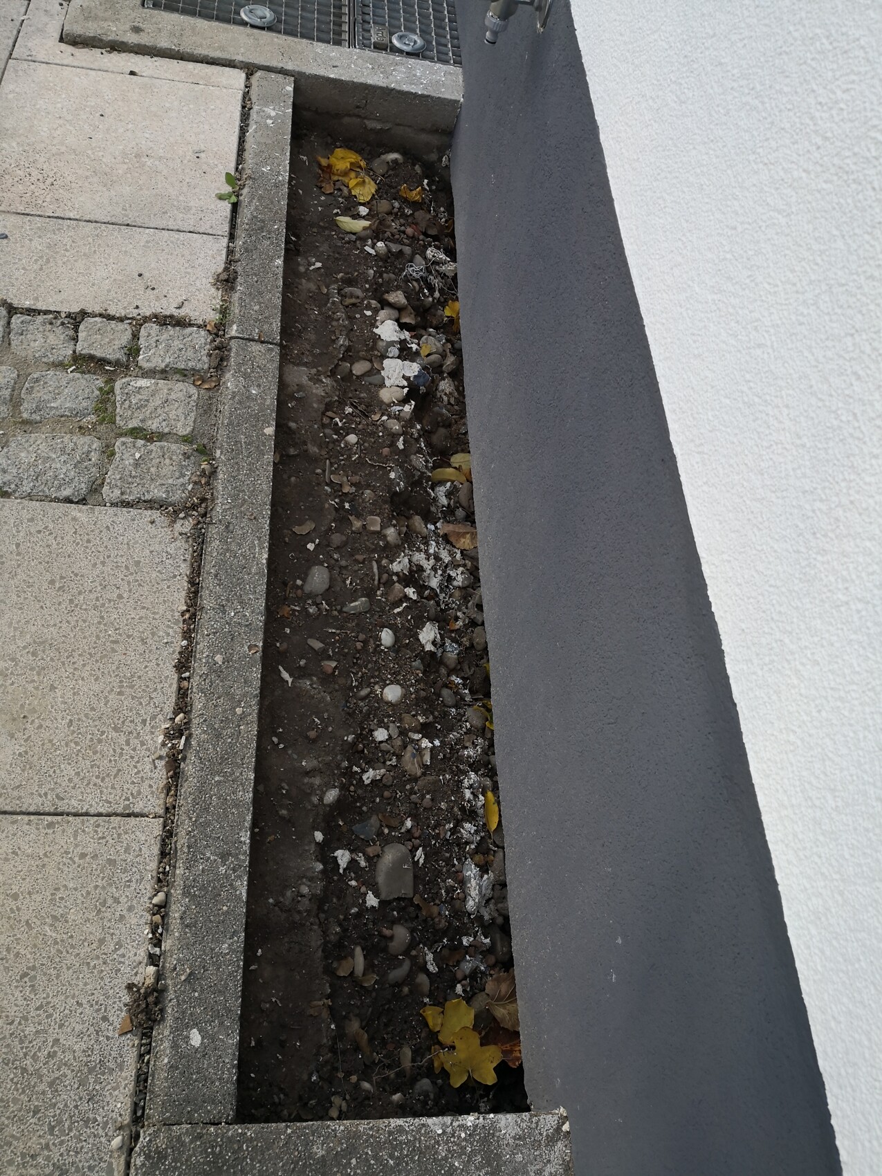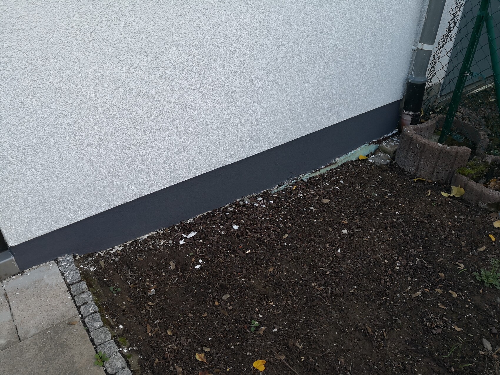 Frage 4: Sollte man an der Garage eine Noppenbahn verlegen? Ich sehe da keinen Grund für, da es bisher auch keine gab.