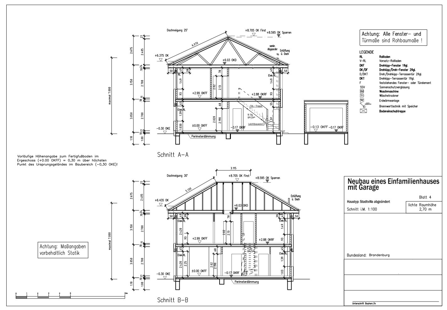 Andererseits sind ja nur zwei Vollgeschosse erlaubt. Wie groß dürfte in diesem Gedankenspiel ein Dachausbau denn sein, um keine Probleme beim Bauantrag zu bekommen?Ein Dachausbau wird hier kein Vollgeschoss.Ist denn die maximale Haushöhe definiert?