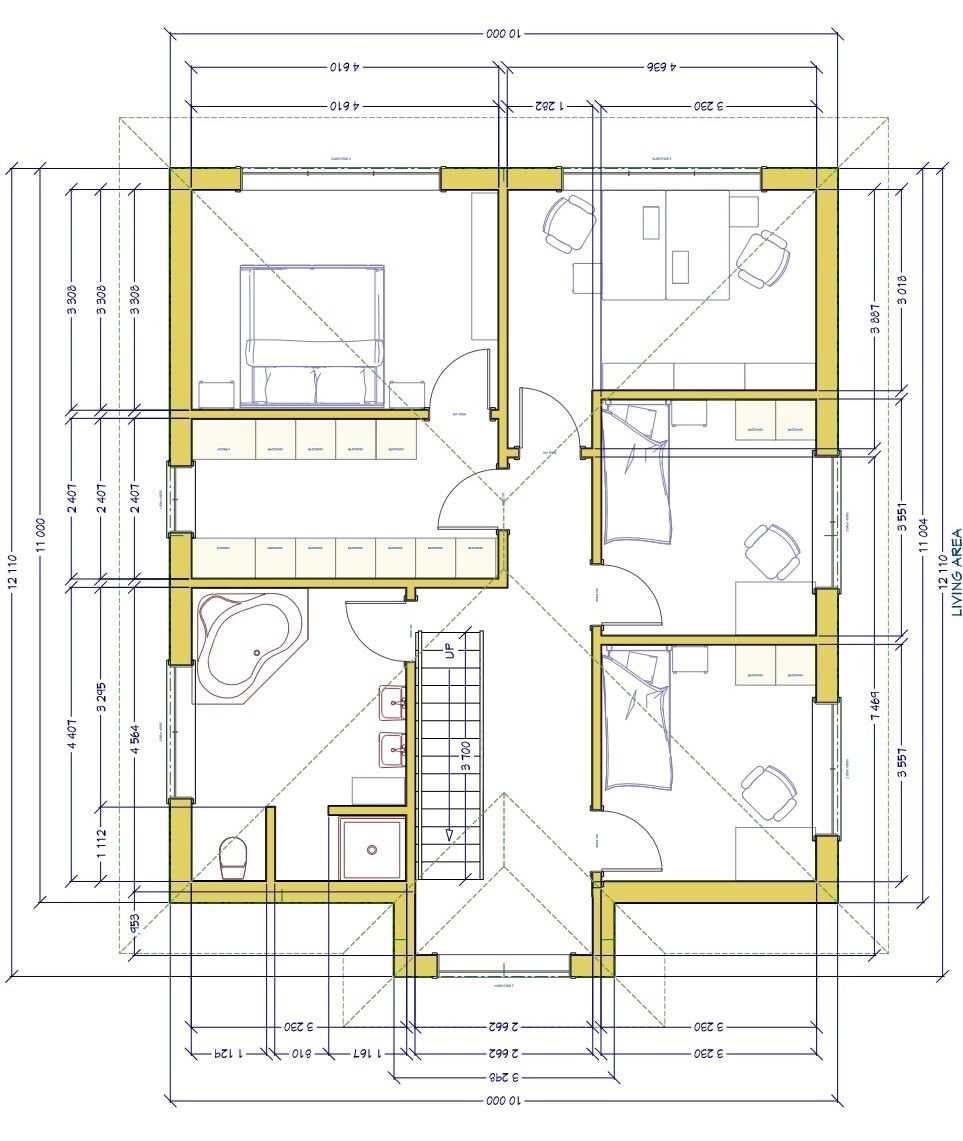 Die Tür vom Gästezimmer noch 65cm nach planoben versetzen, damit notfalls ein schrank dahinter Platz hätte.