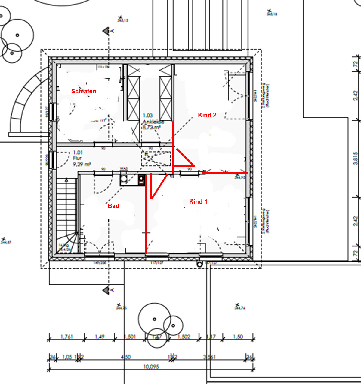 - bzgl. OG. ja hier tuen wir uns aktuell noch schwer... wir haben gestern Abend nochmal eine leicht angepasste Variante diskutiert, in der wir die Nische für einen Einbauschrank im Flur nutzen würden als kleinen Haushaltsstauraum. Dann hätten wir im Schlafzimmer eine schöne gerade Schrank- und Fernsehwand , der Kind 1 würde sich vergrößern und durch das versetzen der Wand in Kind 2 können die Kinderzimmer angeglichen werden... was haltet ihr davon?