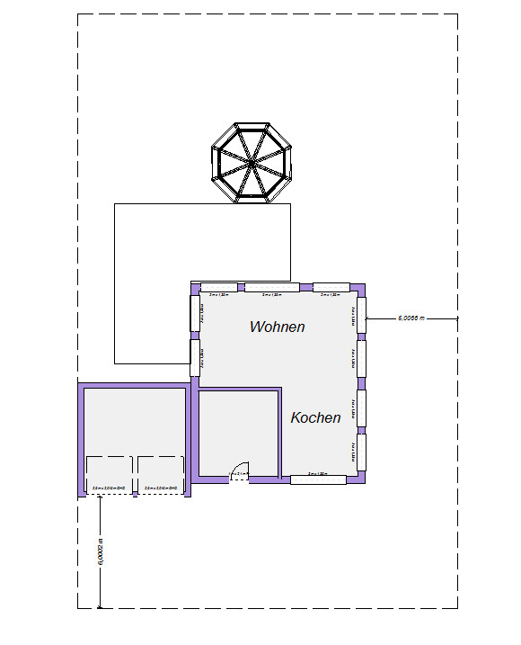 Die Nachbargarage hab ich mal eingezeichnet, ist aber auch nur eine vorläufige Planung. Der Nachbar muss 3m Abstand oder Grenzbebauung, zur Strasse muss der auch 5m Abstand lassen.