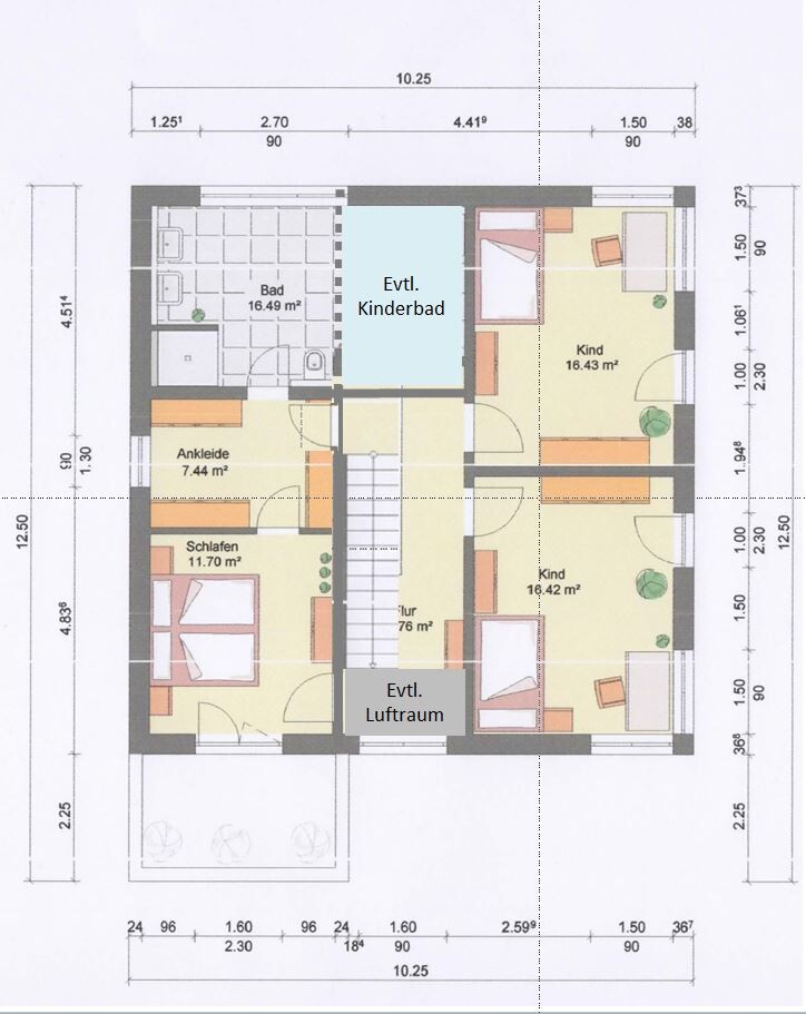 ich finde die Maße passen einfach nicht. In eine 3,27m breite Küche (durch Putz wird sie noch schmaler) passt keine Kochinsel. In das WC im EG sollen eine Dusche und ein WC nebeneinander auf 1,50m (abzüglich Putz und Fliesen sind es wahrscheinlich nur noch 1,45m) passen? Messt euch das doch noch einmal genau aus. Ich denke der Grundriss ist eher für ein Paar ohne Kinder gedacht, mit Kindern nervt ein Bad mit zwei Türen, da immer alles abgeschlossen werden muss UND wieder aufgeschlossen, was Kinder und auch große Kinder immer wieder vergessen werden. Die Treppe im Wohnraum sieht zwar schön aus, allerdings ist auch hier wieder das Problem, dass sämtlicher Kinderbesuch am sofa vorbeiläuft und es nicht so toll ist, wenn abends um 22 Uhr oder auch gerne später der Teeniebesuch hoch und runtergeht, während man eigentlich gemütlich auf dem Sofa liegen wollte.