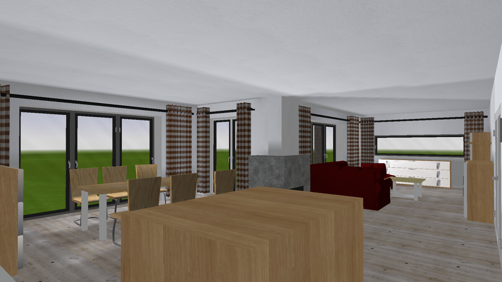 Außerdem würde ich die Couch nach planunten pflanzen, damit du dem Raum mehr Offenheit gibst und -wie @Ysop*** richtig sagt- mehr Abstand zum Kamin gewinnst und ihn im Blickfeld hastDanke für die Idee. Wir haben halt den Zielkonflikt einerseits alle Möbel unterzubekommen und dennoch sehr viel Fensterfläche zu haben. Daher habe ich mal das Fenster im WZ als 3m Panorama Variante über dem Sideboard ausgeplant. Auf den ersten Blick könnte das optisch funktionieren.A