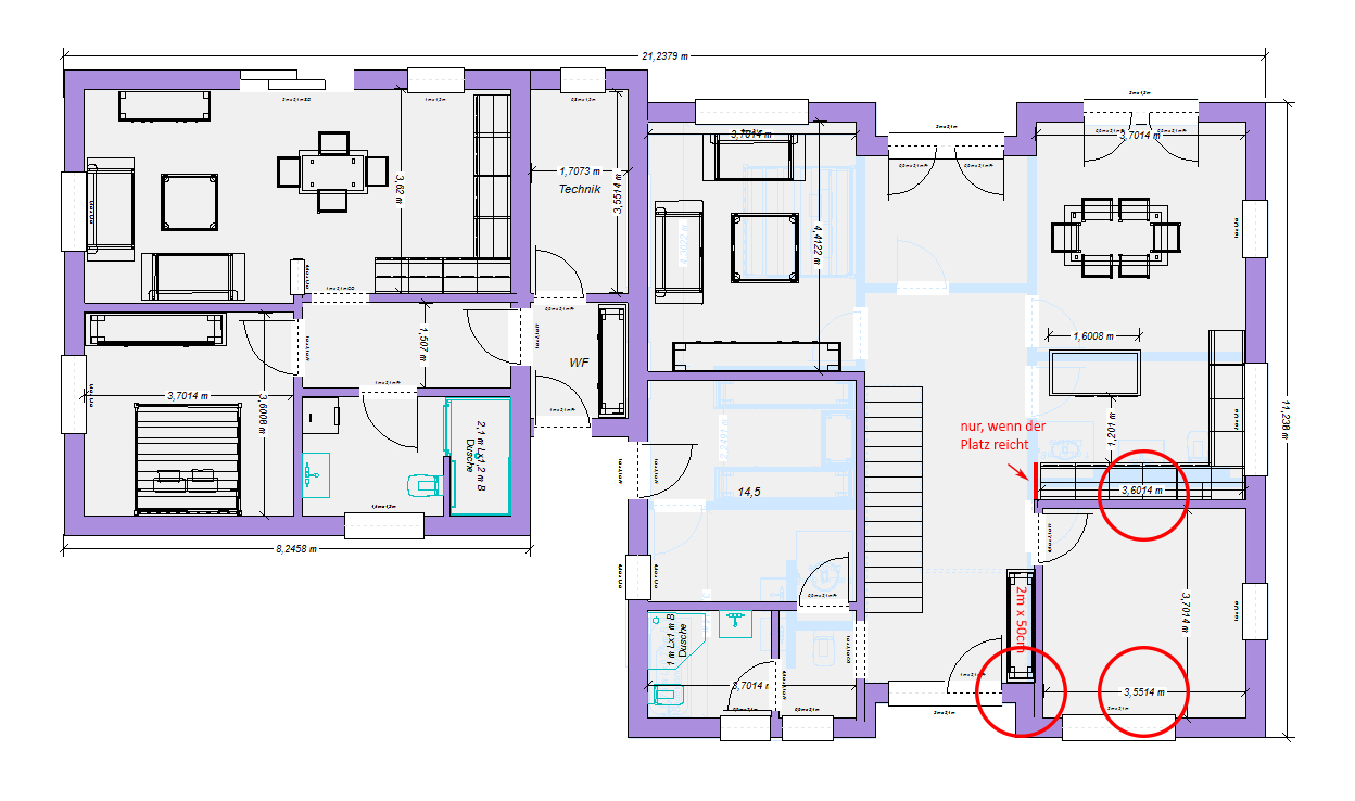 Ich nehm mal an, die Außenmaße lassen sich schwer verändern, weil die irgendwelche Rastermaße beim Fertigbauhaus haben? Oder bist Du da völlig frei?Ne da sind wir leider nicht frei. Denke das müsste schon so bleiben