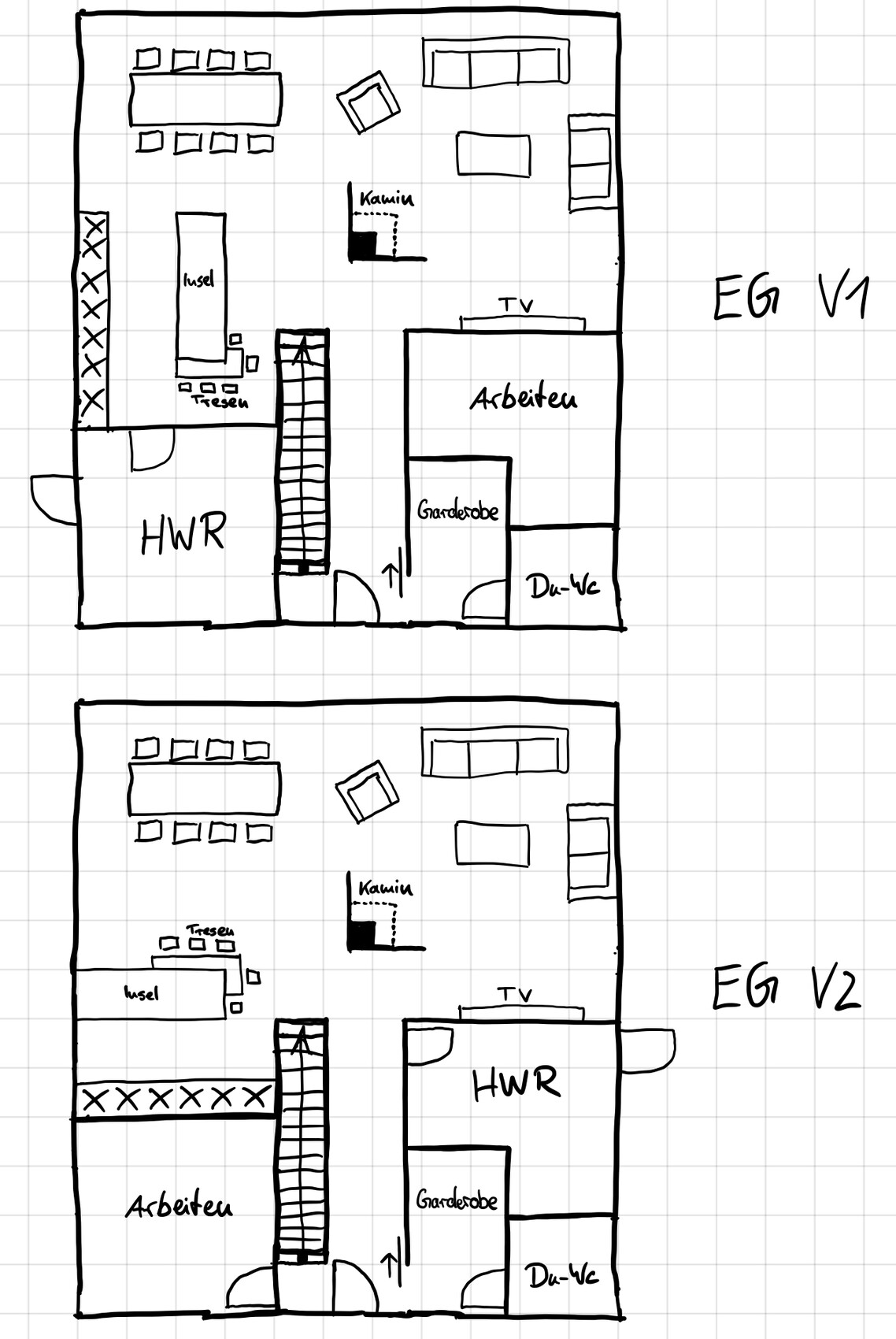Zusätzlich 2 Varianten vom EG (Küchenalternativen und Hauswirtschaftsraum/Arbeiten getauscht. Was findet ihr besser?