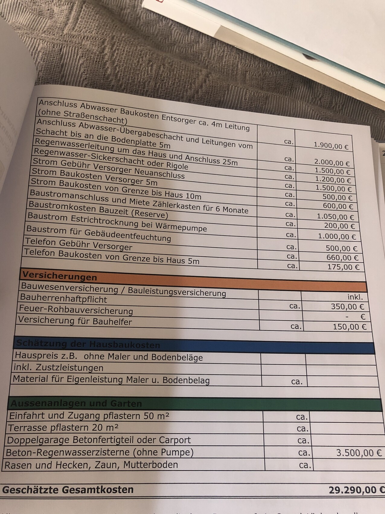 Trotzdem kommts am Ende teurer als man denkt. Jedes Extra kostet halt, Außenanlagen gehen schnell in die zehntausende... Einfach 100000 Puffer, dann wird's schon.Also 100.000 einfach mal als Puffer halte ich für übertrieben. Man sollte aber vorher unbedingt realistisch kalkulieren und dann noch nen Puffer draufschlagen. Einfach mal 100.000 Puffer kriegt man auch bei der Bank nicht durch. Die Baukosten steigen jedes Jahr um ca 6-8% in der Gegend nach dem was ich gelesen habe, allein dafür braucht man einen Puffer.