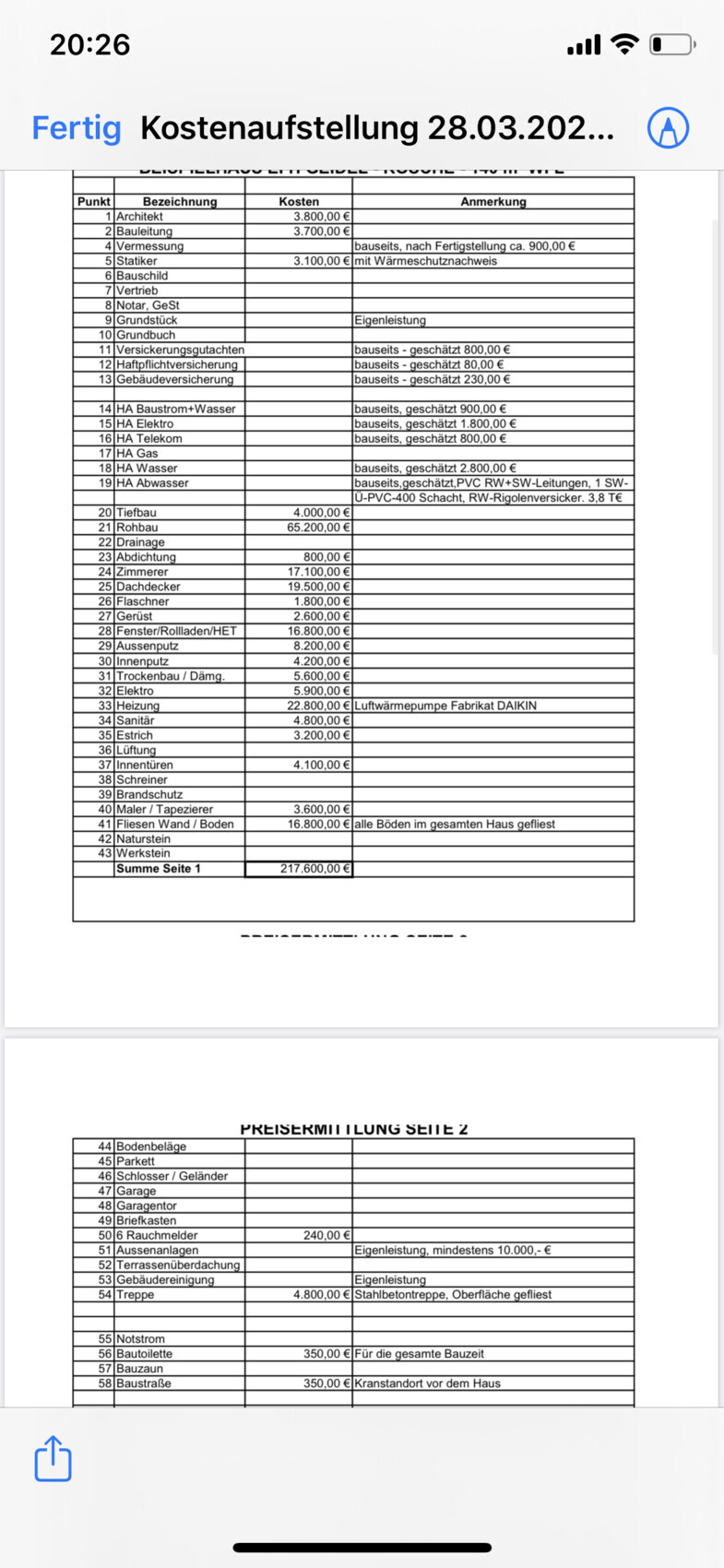 Ich bin wirklich für jeden Ratschlag dankbar, aber bitte auch konstruktive und keine einfach mal 100.000€ Puffer. Das Grundstück kenne ich schon, auch den Preis. Zudem haben beide Firmen dort schon gebaut, kennen also Grund und Boden.