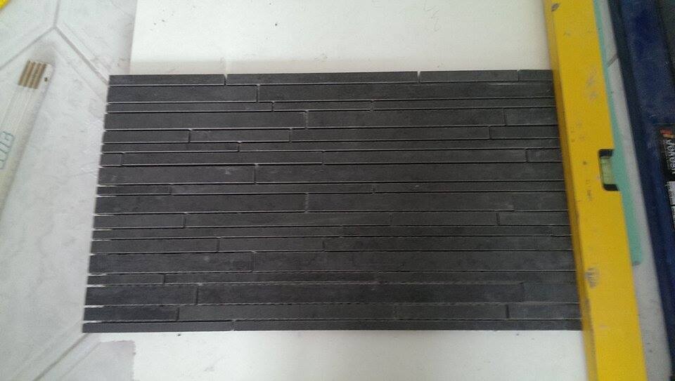 Hatte schon Probleme, als ich den Fliesenkleber waagerecht aufgezogen habe.und gemerkt habe, dass die streifen vom Stäbchenmosaik in diese Rillen umklappen und deshalb nicht 100% eben werden. Jetzt ziehe ich den Kleber vertikal auf und mach ganz kleine Wellen rein, damit die Fliesen trotzdem nicht rutschen. Aber ist schon ganz schön schwierig alles.