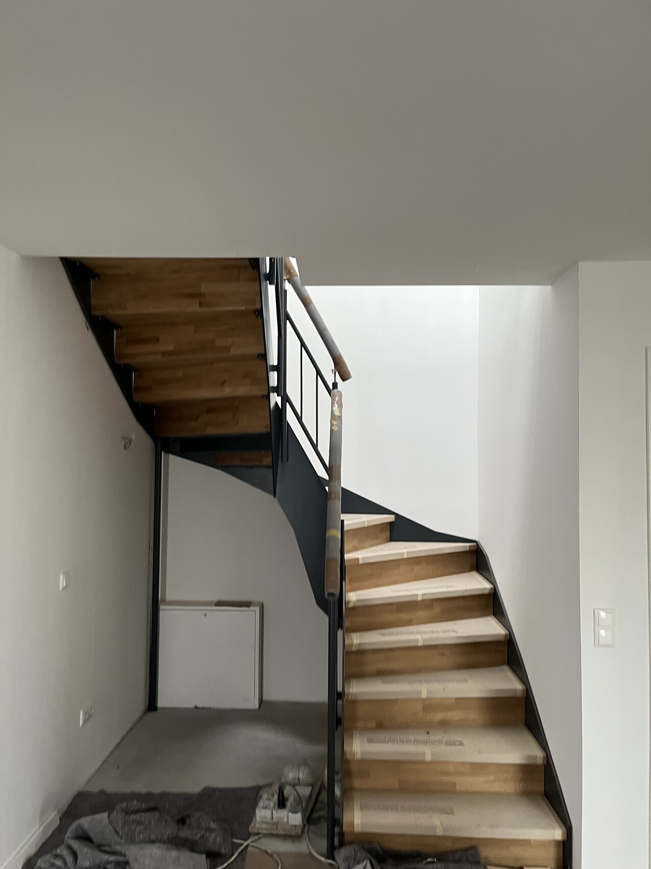 So, ich war gerade mal wieder auf der Baustelle und die Treppenstufen wurden neu gemacht. Die passen nun alle bis auf minimale Abweichungen (die aber sicherlich innerhalb der Toleranz sind). Auch die Höhe des Austritts wurde angepasst, sodass es nun bündig mit dem Fußboden im OG ist. Ich war wegen eines anderen Themas dort, weshalb ich jetzt nicht alles detailliert geprüft habe, aber im großen und ganzen bin ich damit nun zufrieden. Einzig, der Abstand zwischen Wand und Wange stört noch etwas, aber das muss wohl irgendwie anders mit Fugenband und Acryl oder so ähnlich gelöst werden.