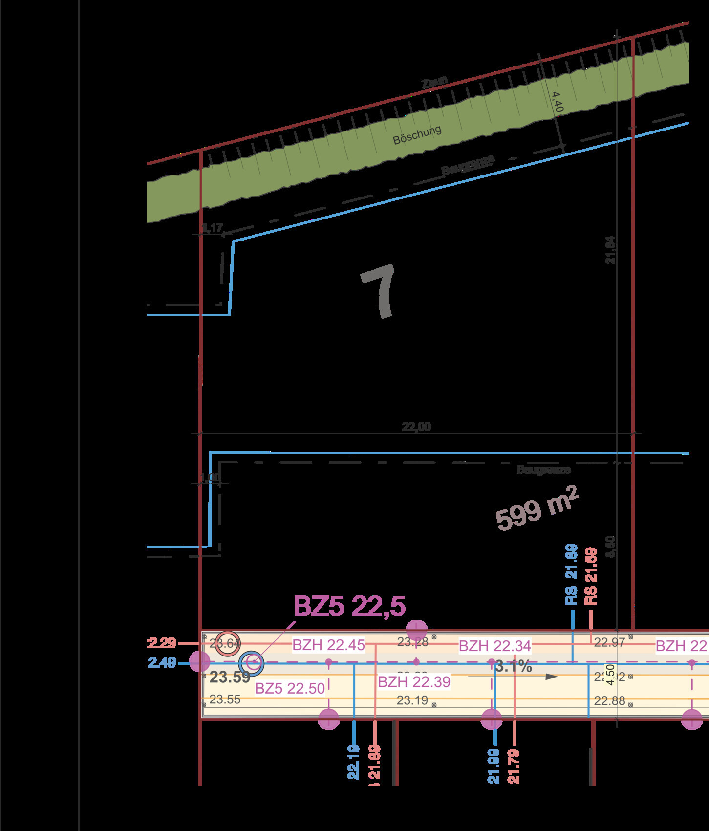 Bei giebelständiger Bauweise würden nur ca. 7m zwischen Hauswand und Grundstücksgrenze auf der Westseite übrig bleiben. Zudem ist der Nachbar auf Grund seines Baufensters mehr oder weniger dazu gezwungen, sein Carport dann genau auf der Höhe unserer Terrasse anzulegen. Da würde ich mich glaube ich zu sehr eingeengt fühlen. Im Süden verläuft ja der Stichweg und dahinter kommt erst noch der Vorgarten der anderen Nachbarn. Das kommt dann deutlich luftiger.