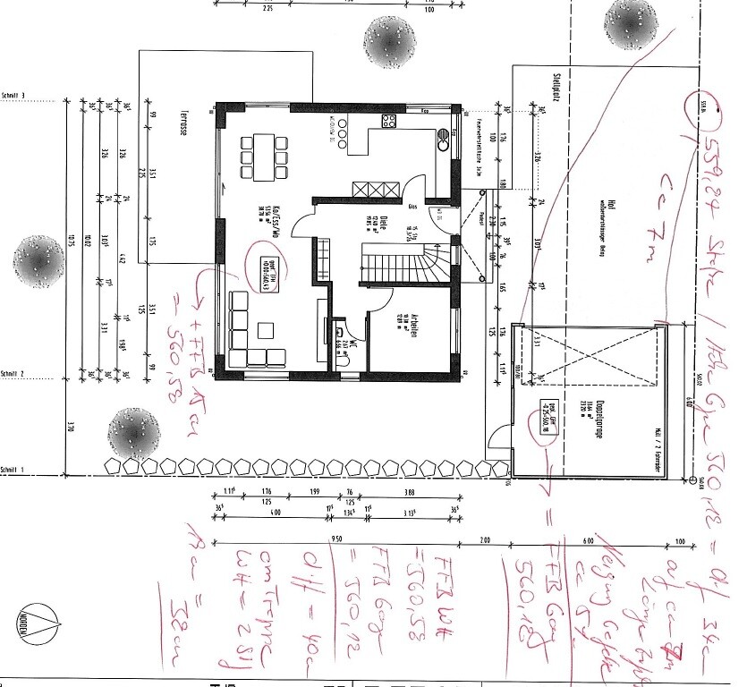 Ok, der Plan macht es deutlich. Im ersten Schnitt hatte ich gedacht die Garage öffnet nach rechts.