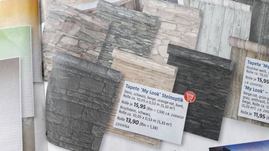 In einem großen roten Baumarkt gibt es gerade Tapeten im Angebot