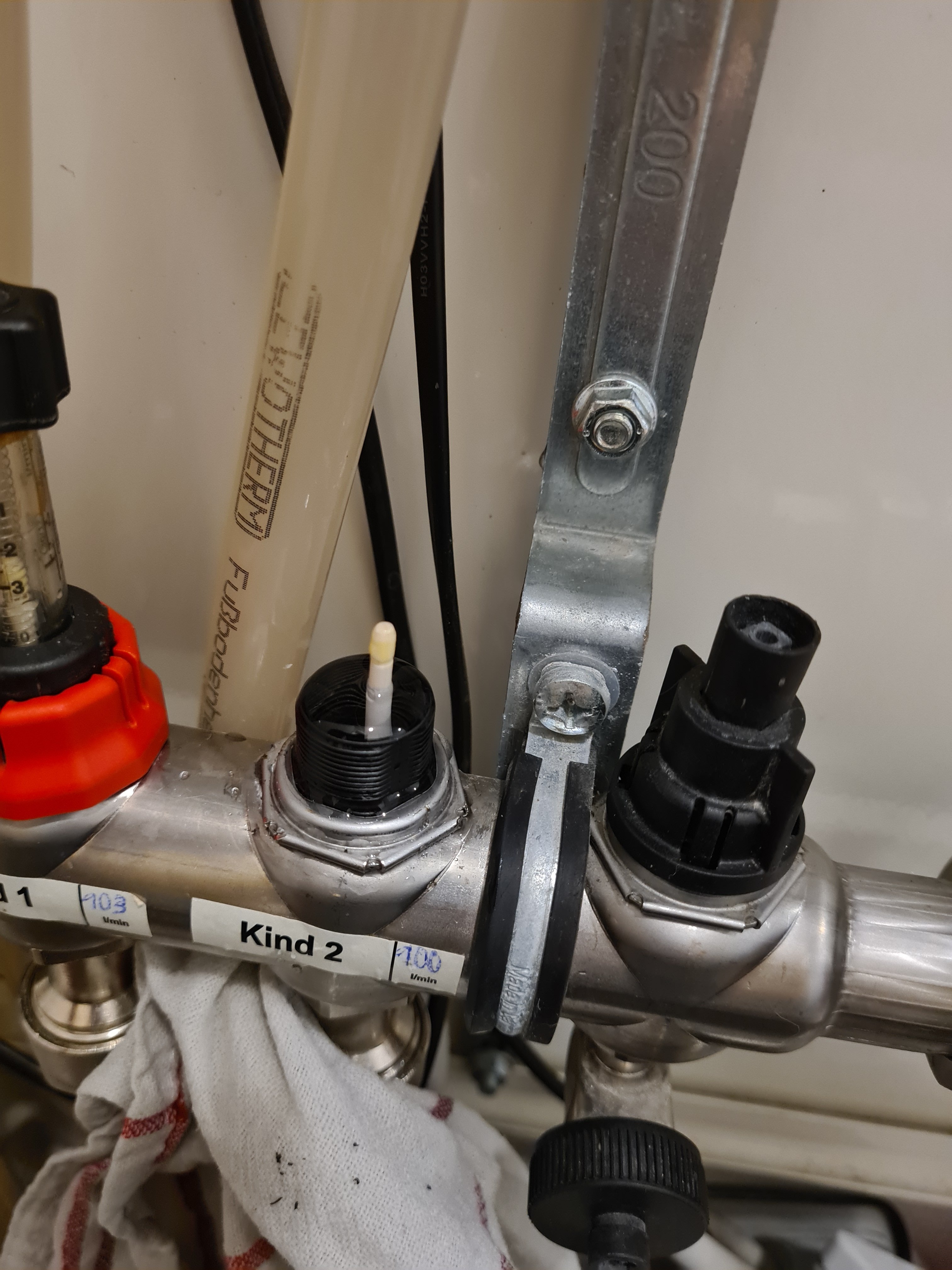 Die Röhrchen im DG HKV waren verdreckt so das man nicht mehr den eingestellten Durchfluss ablesen konnte. Habe mir dann gedacht ich mache die einmal sauber. Zum test habe ich vorher im Keller das Ganze bei einen gemacht, dort klappte alles ohne Probleme. Durchfluss ist da, auch der Boden wird warm bzw der Raum.