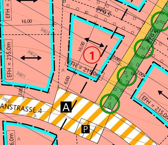ich möchte ein Stadtvilla bauen. Bild 1: Bebauungsplan, Bild2 : Bebauungsplan mit Skizze von dem Haus.