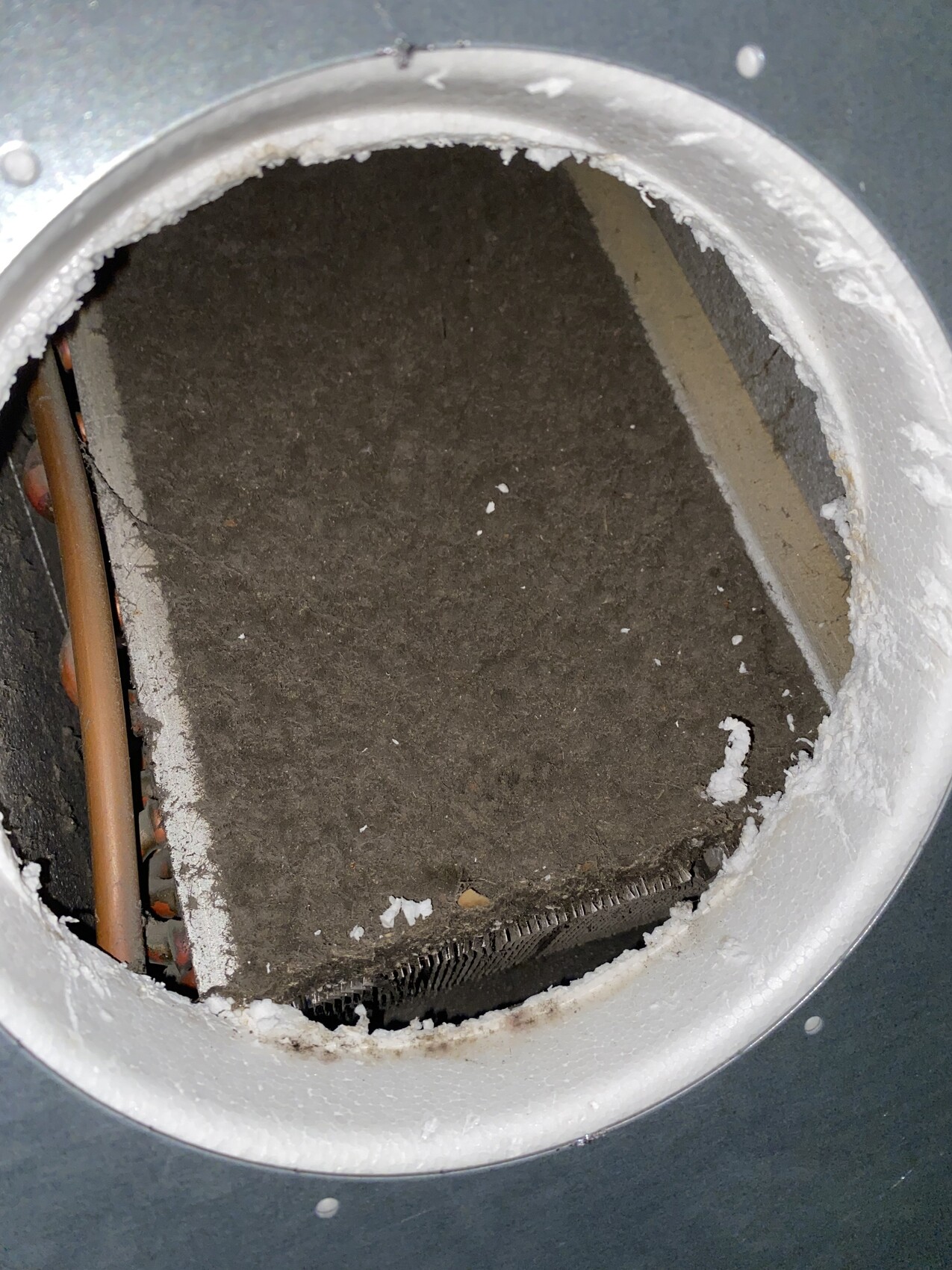 Wenn es hinter der Heizung eng ist, kann man (neben der Lüfterdrehzahl) auch von vorne statt dem Grobfilter das Handy in den Schlitz hinter dem Wärmetauscher stecken und ein Foto machen. Dann sieht man schnell, ob es mal wieder nötig ist.