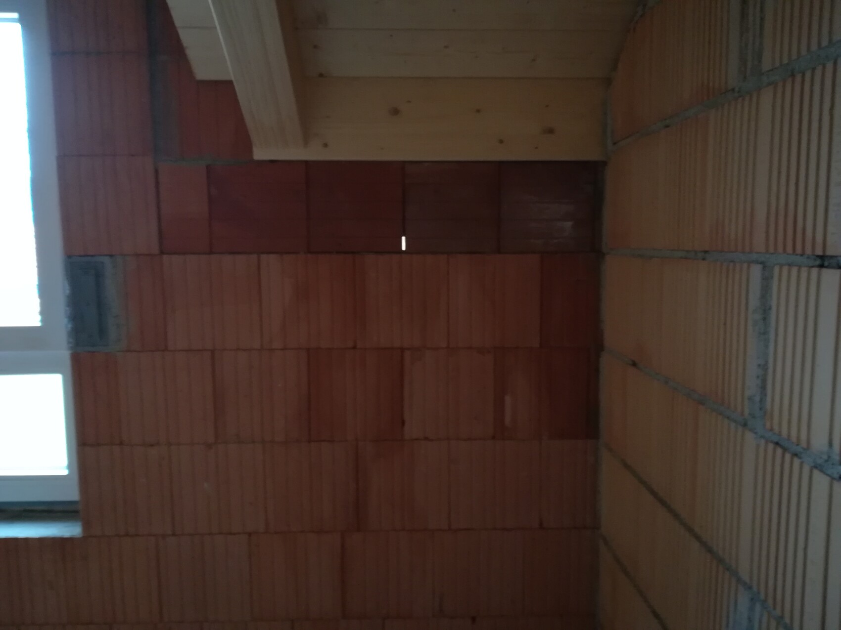 Allerdings hat das Porotonmauerwerk rechts des Fensters keinen Verbund. Ob das in Ordnung ist, weiß ich nicht. In dem Zusammenhang wäre interessant, wie der Fenstersturz genau ausgebildet ist.