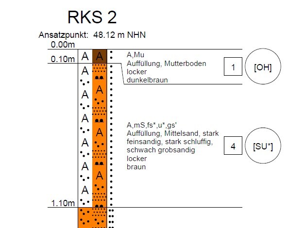 Er muss verdichtbar und drainagefähig sein.Ausschnitte aus dem Versickerungsgutachten mit kf-Wert. Rammkernsondierung 1 und 2 befinden sich nahe am geplanten Mauerstandort. Ich würde als Laie sagen: Erdboden, teilweise stark schluffig, eher feinsandig als mittelsandig => Spezielle Hinterfüllung mit grobkörnigem Sand oder Kies muss sein, oder?
