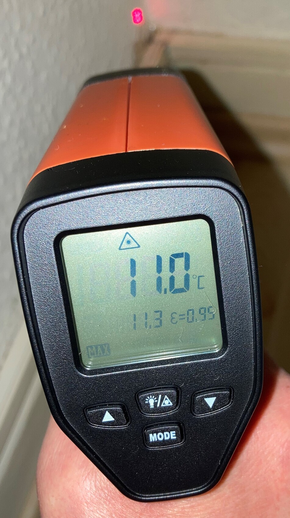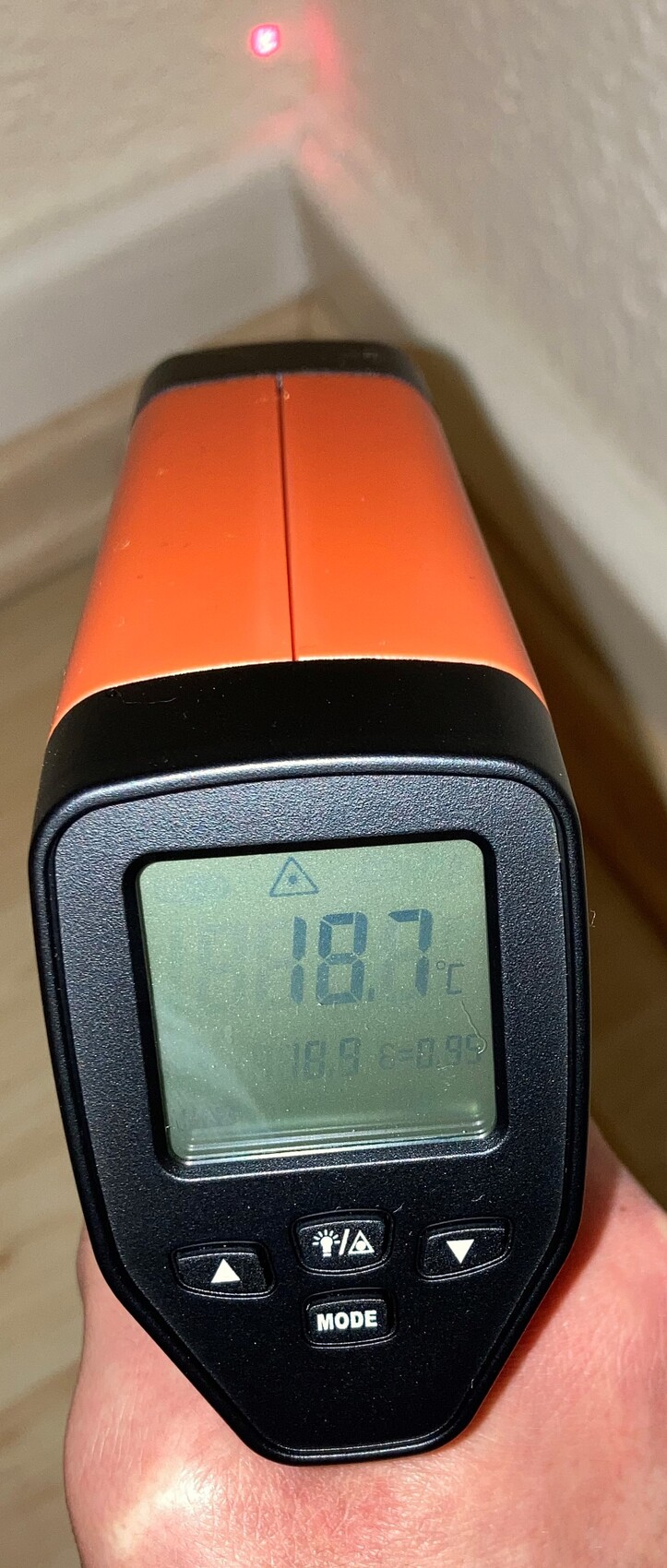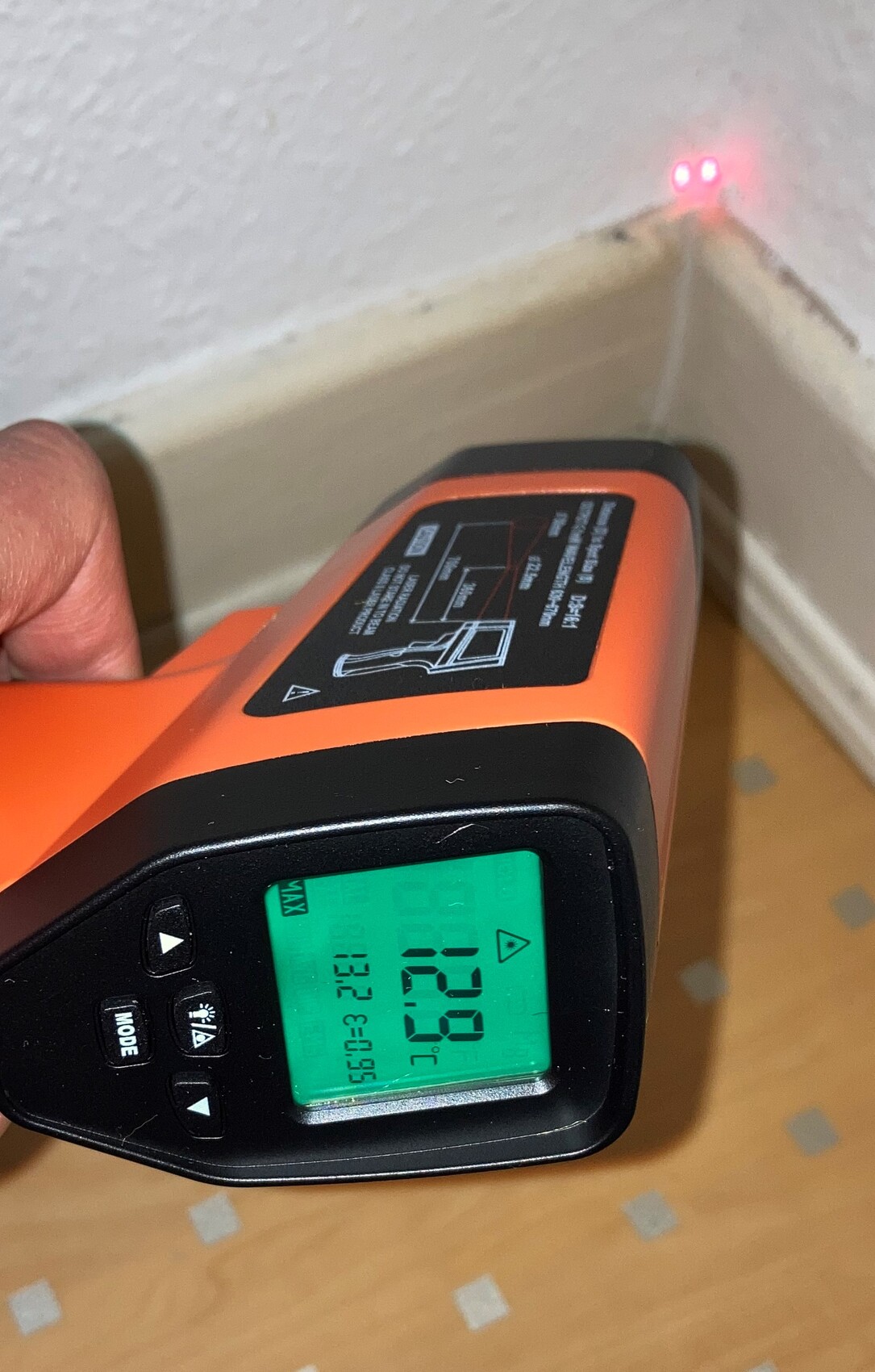 Ich habe mir Mühe gegeben und einige Messungen vorgenommen, und zwar die Feuchtigkeit und die Wärmebrückeermittlung. Bei der Interpretation bräuchte ich auf jeden Fall eure Hilfe. Für die Feuchtigkeitsmessung habe ich TROTEC BM31 genutzt, das die Feuchtigkeit nicht in %, sondern in einheitslosen Digit Werten angezeigt. In der Schimmelecke ist die Feuchtigkeit nur an einer Stelle sehr hoch, und zwar gerade in der Ecke. Am höchsten ist die Feuchtigkeit in der Ecke desselben Zimmers (Schlafzimmer) derselben Außenwand, aber da wo es keinen Schimmel gibt (kommt noch aber eventuell vielleicht?).
