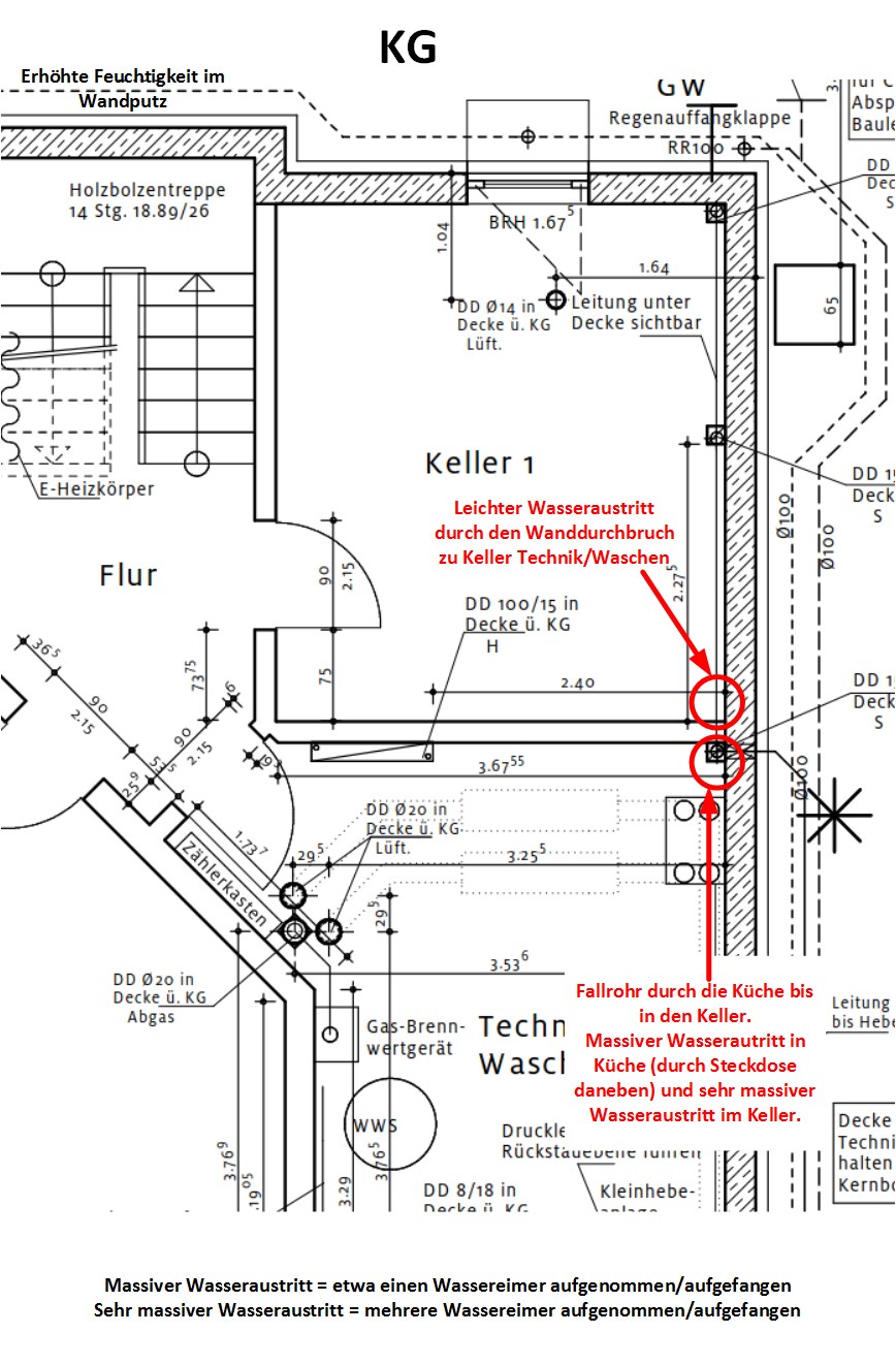 Wasserschaden ist im Badezimmer OG aufgetreten, dann ist das Wasser ins EG und ins KG gelaufen.