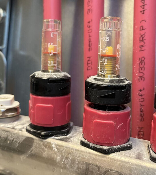 Während 2.: Immer kontrollieren, dass die Heizung nicht weniger als 12l/m pumpt - was tue ich, wenn doch? Muss ich dann doch irgendwo mehr heizen, z.B. Keller? Oder Heizungseinstellungen runter (Heizkurve, Fußpunkt, ...) und gleichzeitig die Volumenströme in den Räumen erhöhen?
