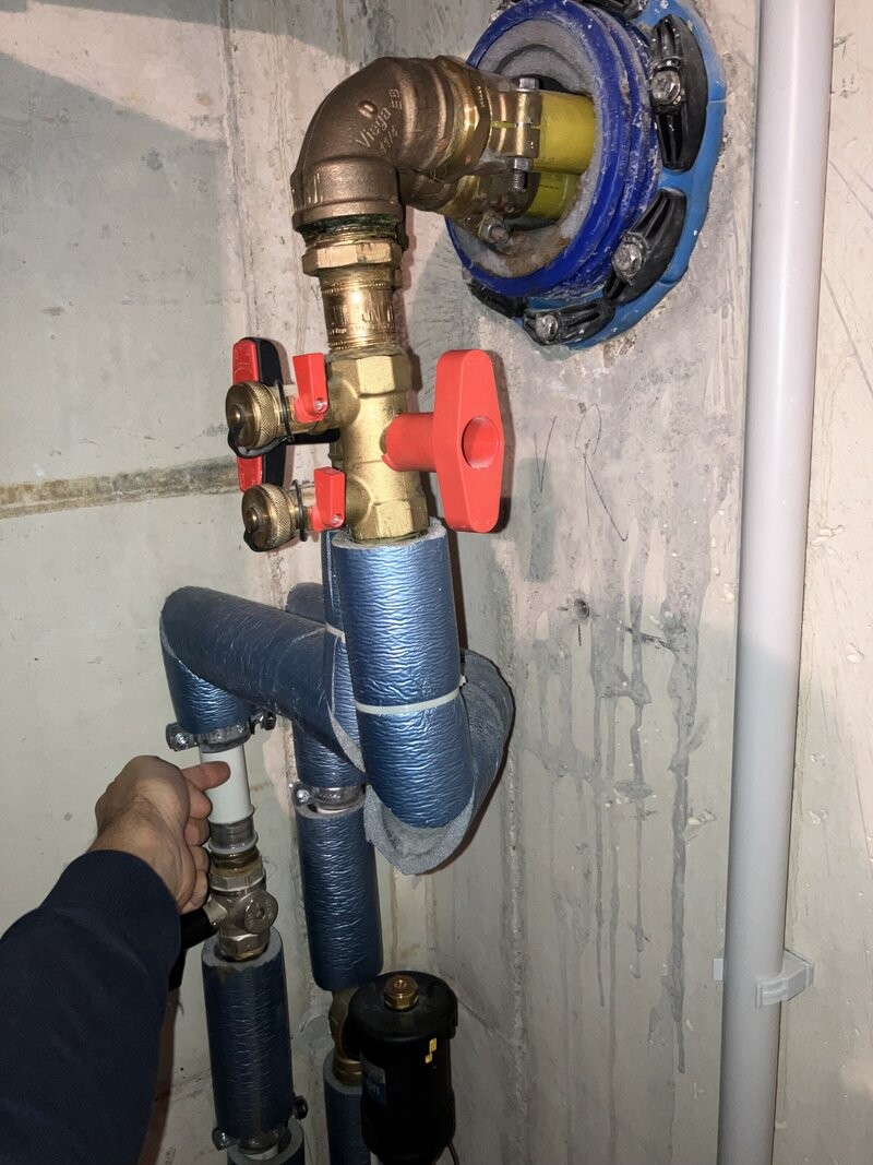 Ich soll einen Installateur beauftragen, der ein T-Stück setzen soll, sodass der Verflüssiger "rückgespült" werden kann, um die Verstopfung zu beseitigen