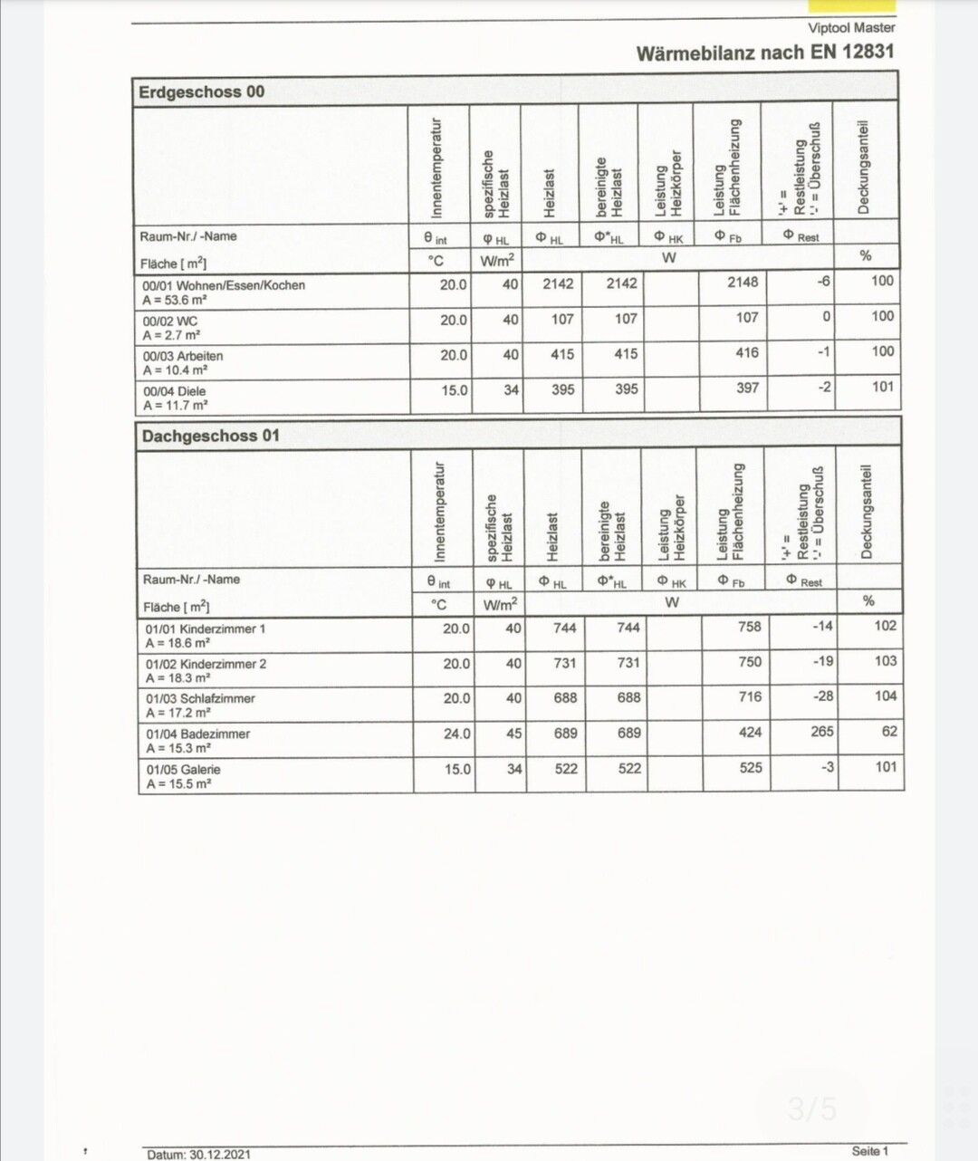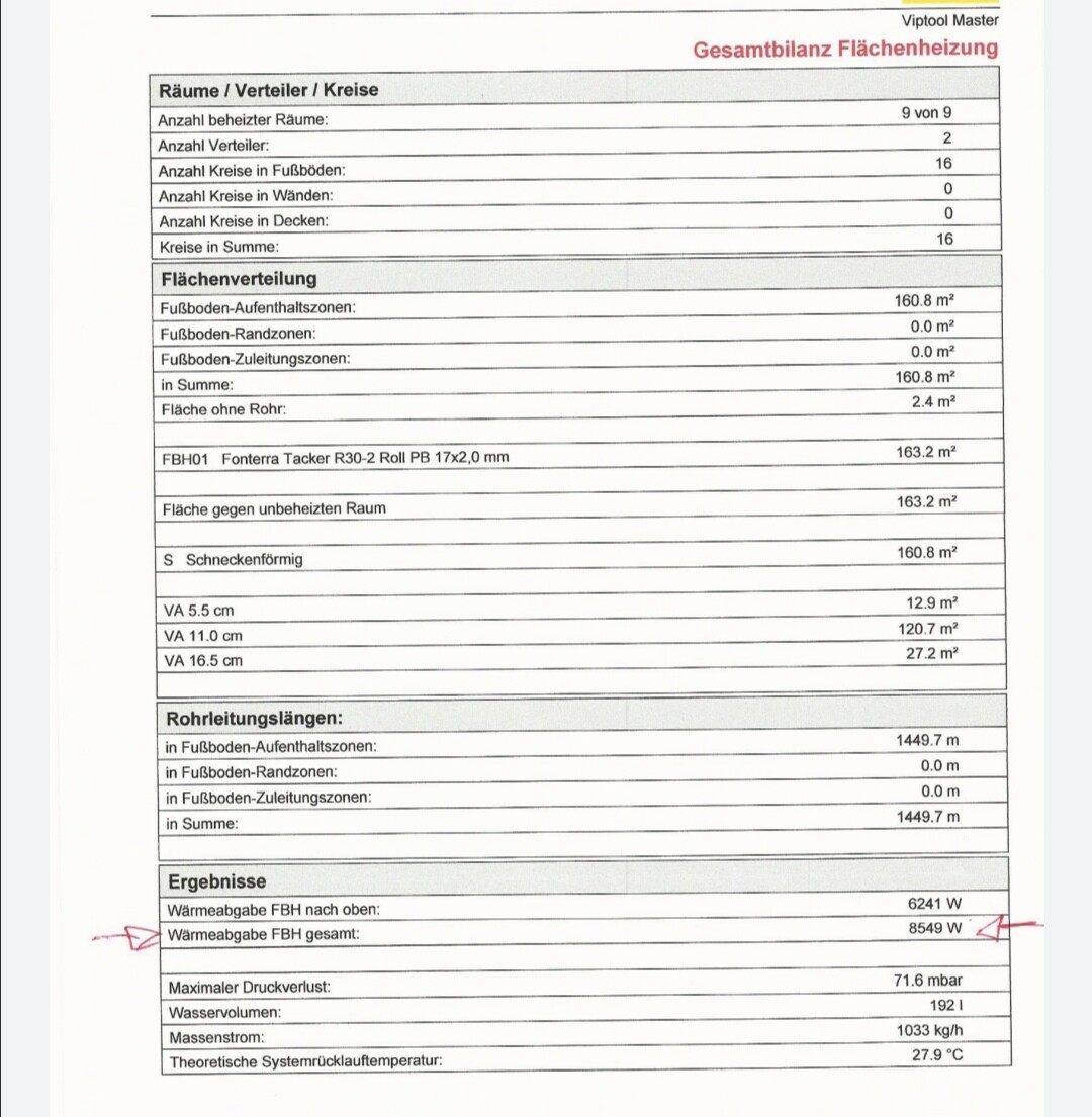 Sieht aus wie für einen Altbau gerechnet. Dämmtyp Raum sieht falsch aus. Man kann das sicher so hinrechnen, dass 9 kw passen aber dann nicht mit den verbauten (Dämm-)Materialien.