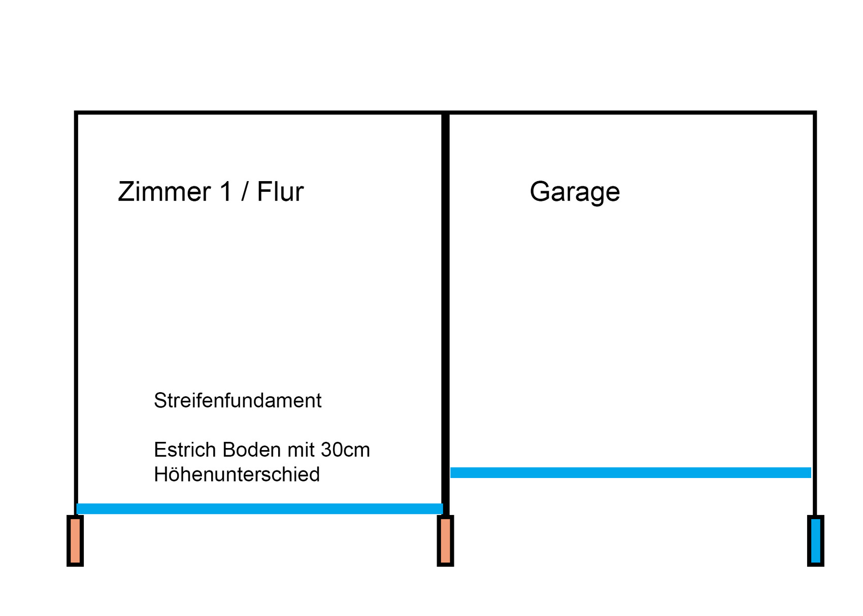 Primär würde mich auch Interessieren wie sich der Übergang Garage - Zimmer verhält, da hier ja der Boden ca. 30cm Unterschiedlich ist.
