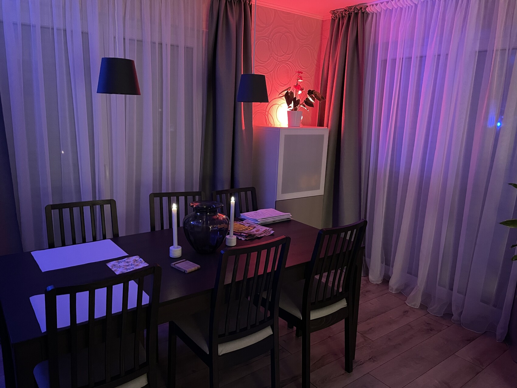 Was den Tisch anbelangt...ich war ein bisschen erstaunt, dass der Tisch nur so klein ist, der kam mir definitiv immer größer vor. Und eine große Öffnung hätte ich gerne damit auch so Sachen wie ein Sofa (oder irgendwann mal ein neuer großer Tisch, der alte zieht auf jeden Fall erst einmal mit um 😉 ) ohne viel Stress ins Haus kommen. Aber passen wird das sicherlich eher an der Südseite.