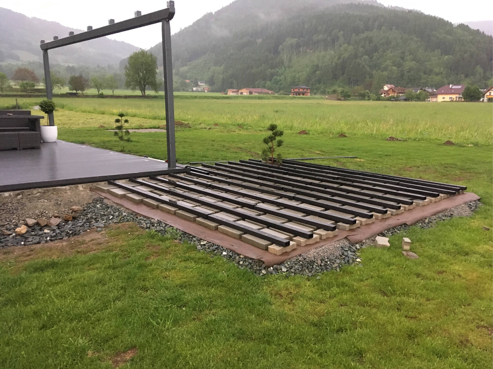 Ich hab nur leider keine randleisten mehr da ich bei der anderen Terrasse die Hausseite nicht mit einberechnet habe.die muss ich bestellen,dass dauert sicher knapp 2wochen.Für solch einen Ausblick fahren wir Norddeutsche in den Urlaub
