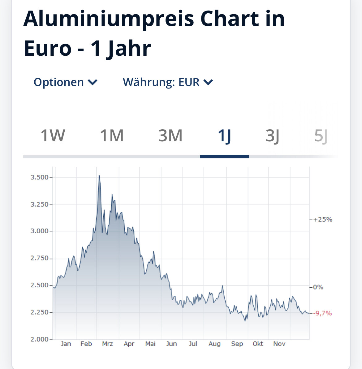Die Preise für Aluminium scheinen sich ja wieder zu regulieren..siehe Screenshot.
