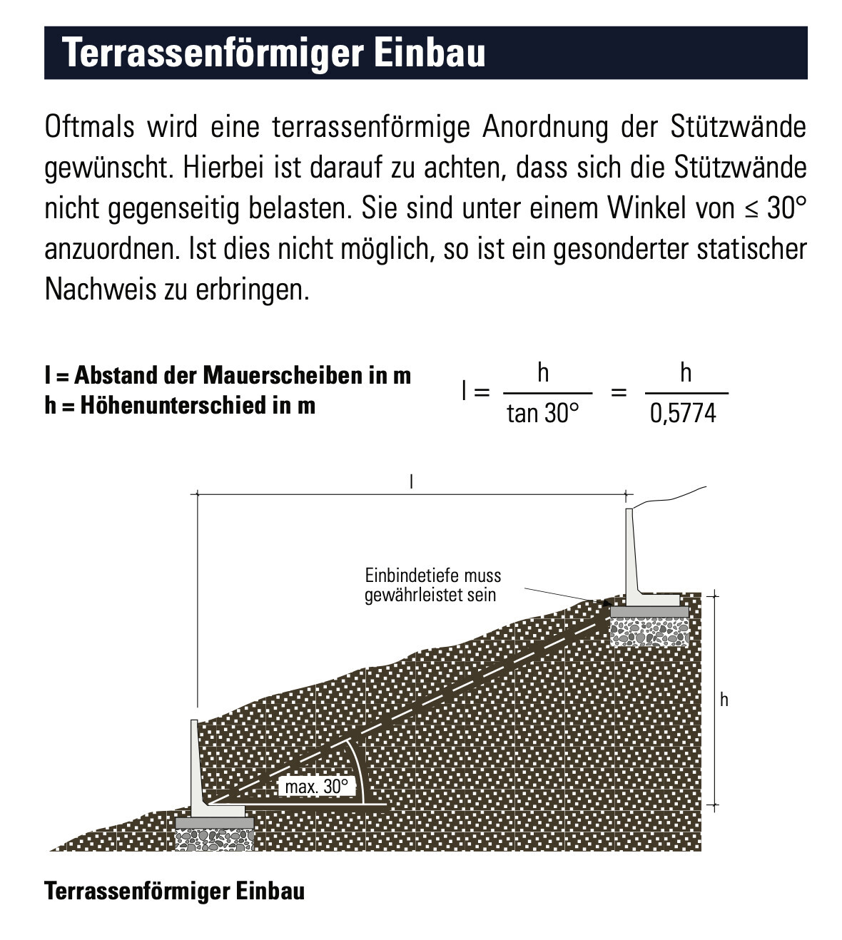 Dort wird auch der terrassenförmige Einbau beschrieben: der Winkel zueinander darf 30° nicht überschreiten.