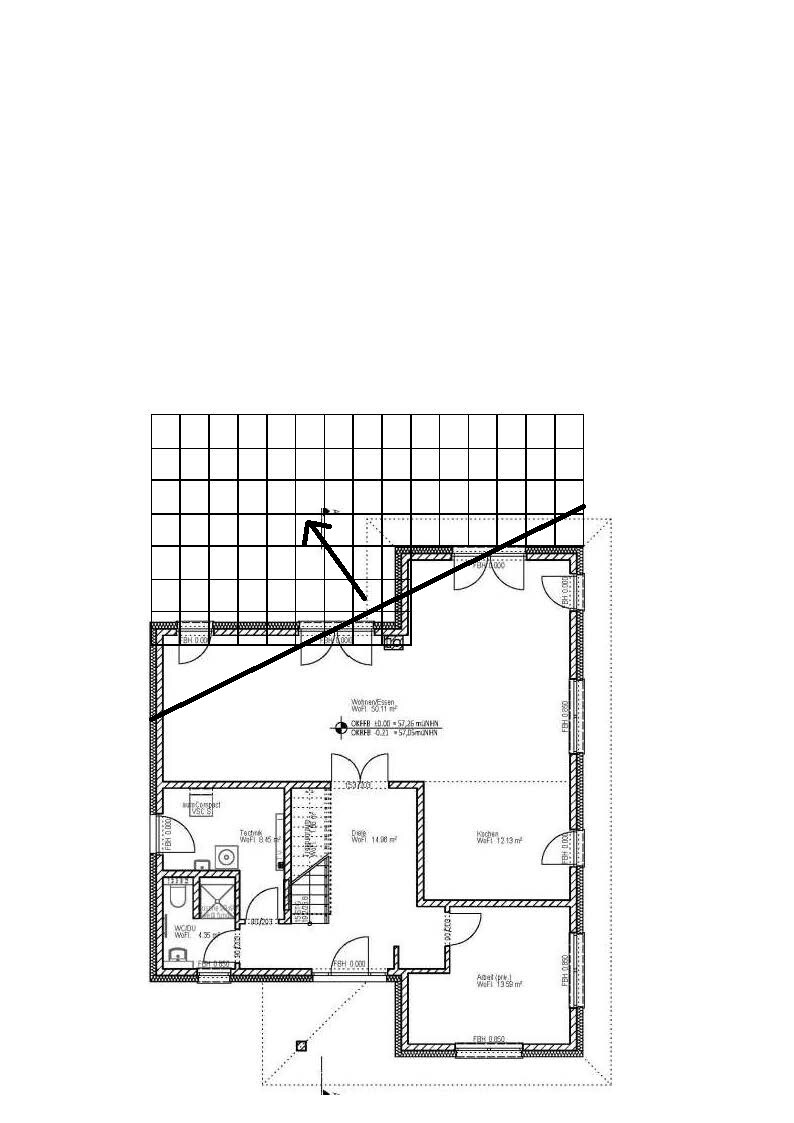 oder eine gedachte Linie von Achse Doppelfenster links zu Achse Doppelfenster rechts. Von dieser Achse das Gefaelle nach links oben und Steigung nach rechts unten.Etwa so?