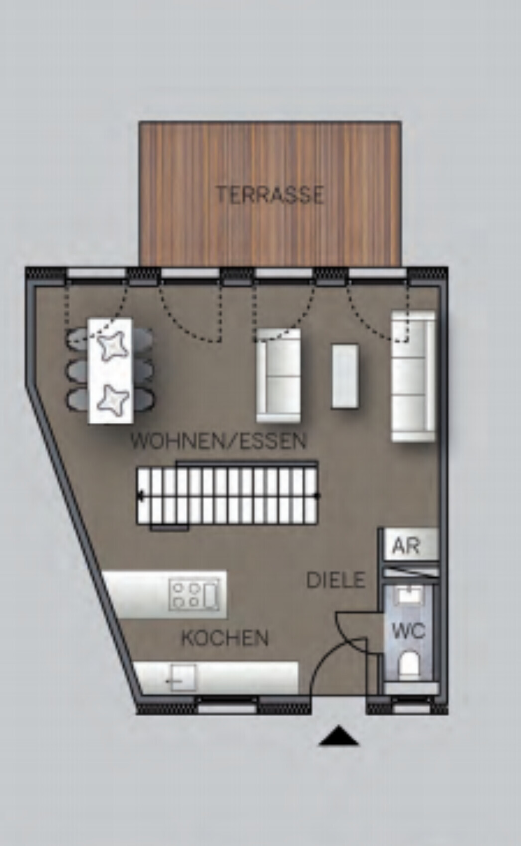 Ich hab ja spontan gedacht, dass man gut das WZ vor der Treppe abtrennen kann und dort statt des AR einen Garderobenraum generiert.