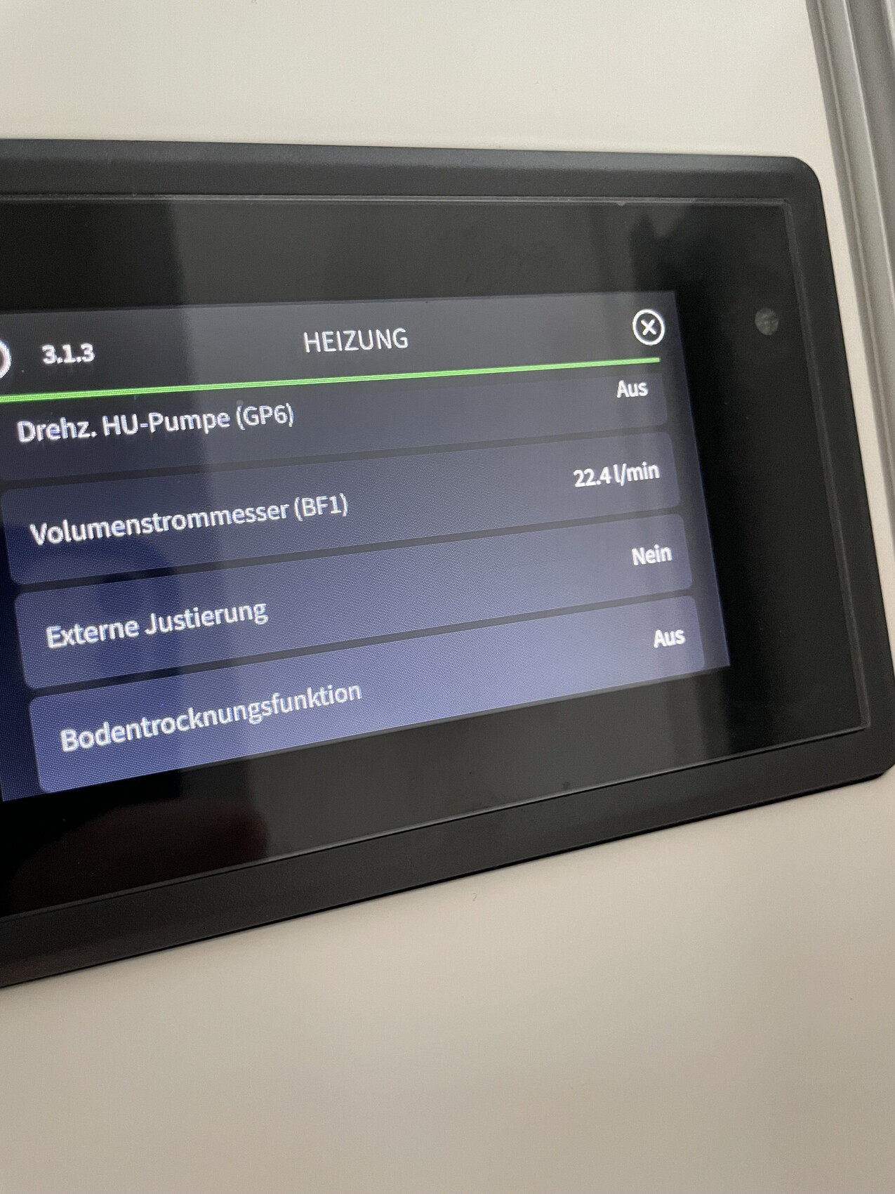 das brachte mich auf die Idee, dass der Druck im System ggf erhöht werden muss? Der ist im minimalen aber grünen Bereich, Fotos anbei!