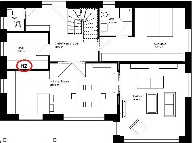 - komische tote Fläche zwischen Wohnen und Essen