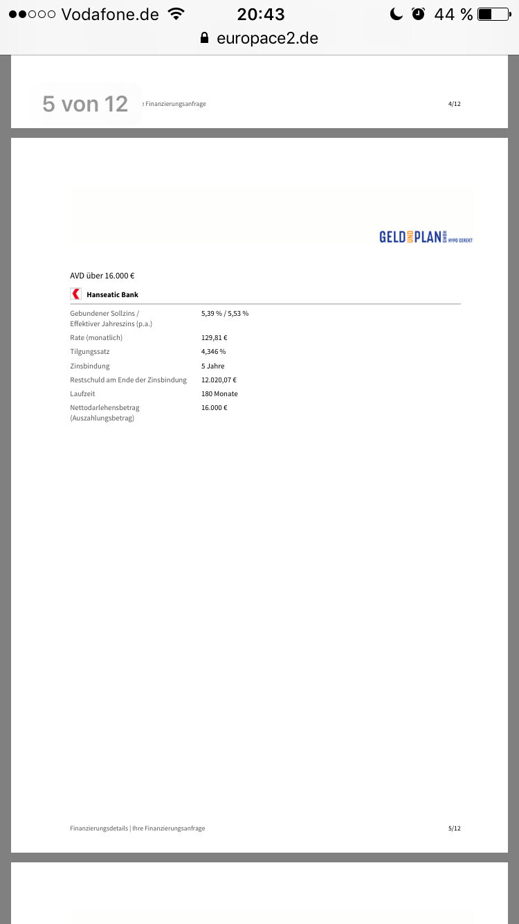 Die Sparkasse hat mir doch so ein Angebot gemacht, habe ich doch hier auch abgebildet?
