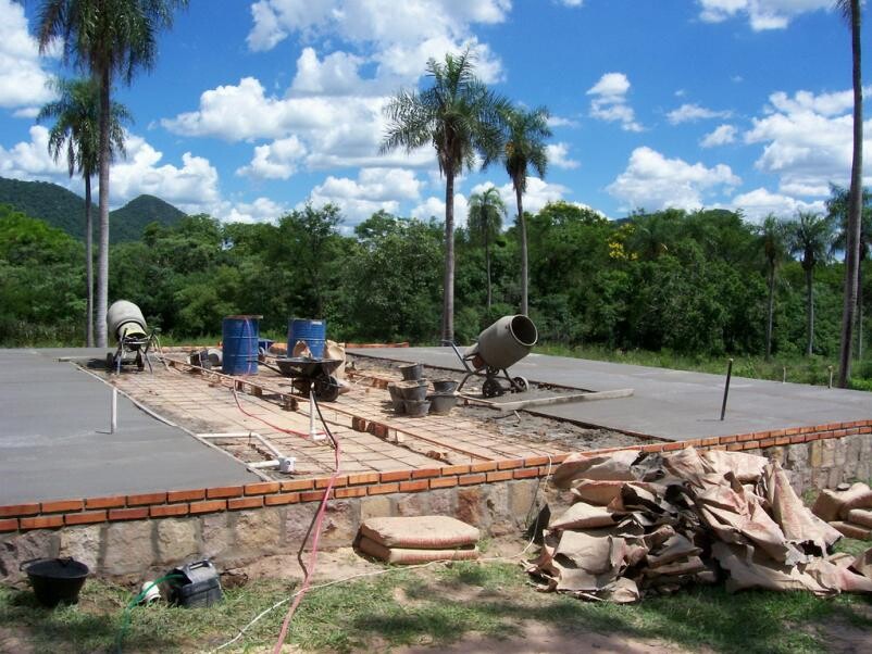 Hier mal ein paar Fotos, damit ihr mal eine ungefähre Vorstellung davon bekommt, wie in Paraguay gebaut wird. Die Arbeiter, so sagte man mir, seinen sehr gut gewesen und das Haus am Ende Tipp top für PYische Verhältnisse. Ich hätte auch noch ein Video von einer Chaotenbaustelle anzubieten aber es ist das anschauen kaum wert. Da rollen sich euch nur die Fussnägel hoch *g* Auch mein Haus würde nur aus Ziegeln gebaut, weil diese dort einfach unschlagbar günstig sind.