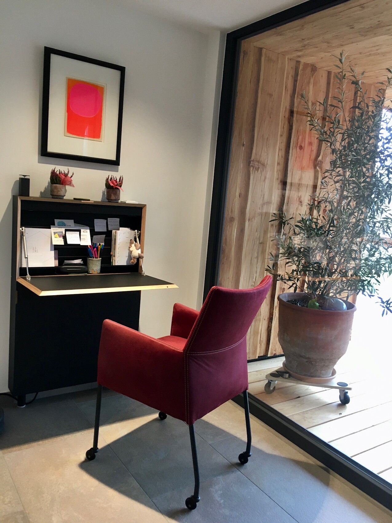 ich bin schon bei den holländischen Abietern gelandet...Wir wurden auf einem Streifzug in Holland bei refri in Weert fündig. Leider werken die momenteel hard aan een niewe versie van de website und es gibt nichts zu sehen. Hier stehet einer der Stühle bei einem unserer Schreibtische. Sehr bequem und stabil trotz dünner Beine und Rollen. Der Hersteller ist mir nicht bekannt. Es gibt sehr viele Bezugsvarianten - wir haben uns für einen nicht tierischen an Wildleder oder Alcantara erinnernden Bezug entschieden und neben rot auch noch blau, grün, senf und grau genommen. 275€ fanden wir für die Qualität fair. Da die Stühle auf Bestellung gefertigt werden braucht man 6 Wochen Geduld.ypg12.01.21 00:06