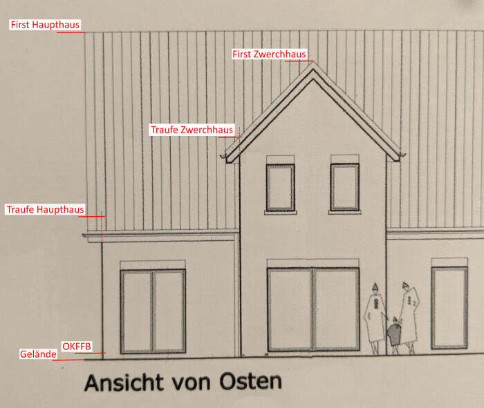 Da das Zwerchhaus nicht untergeordnet ist, müssen sowohl Traufe Haupthaus als auch Traufe Zwerchhaus unter den 6.25m bleiben.