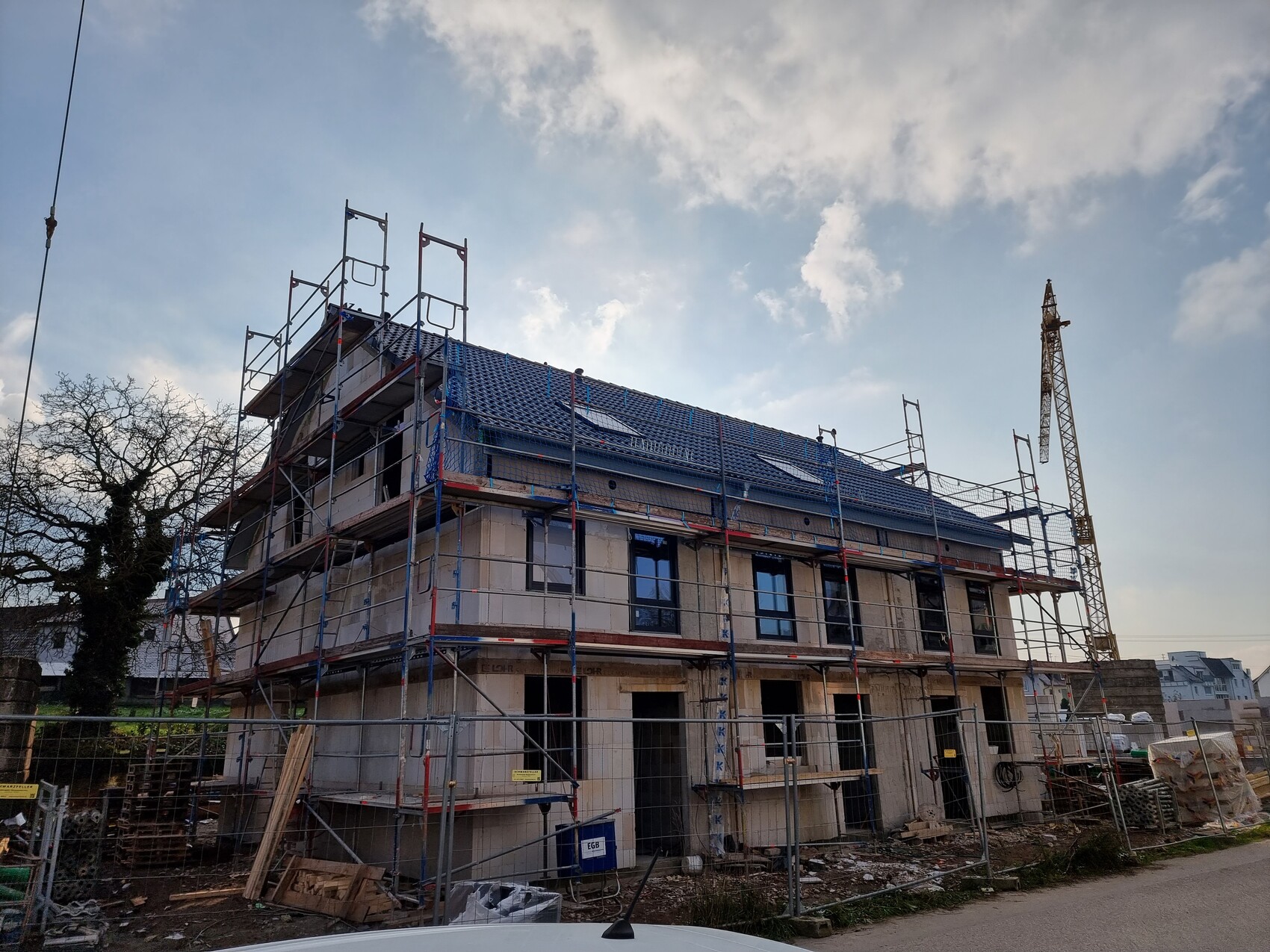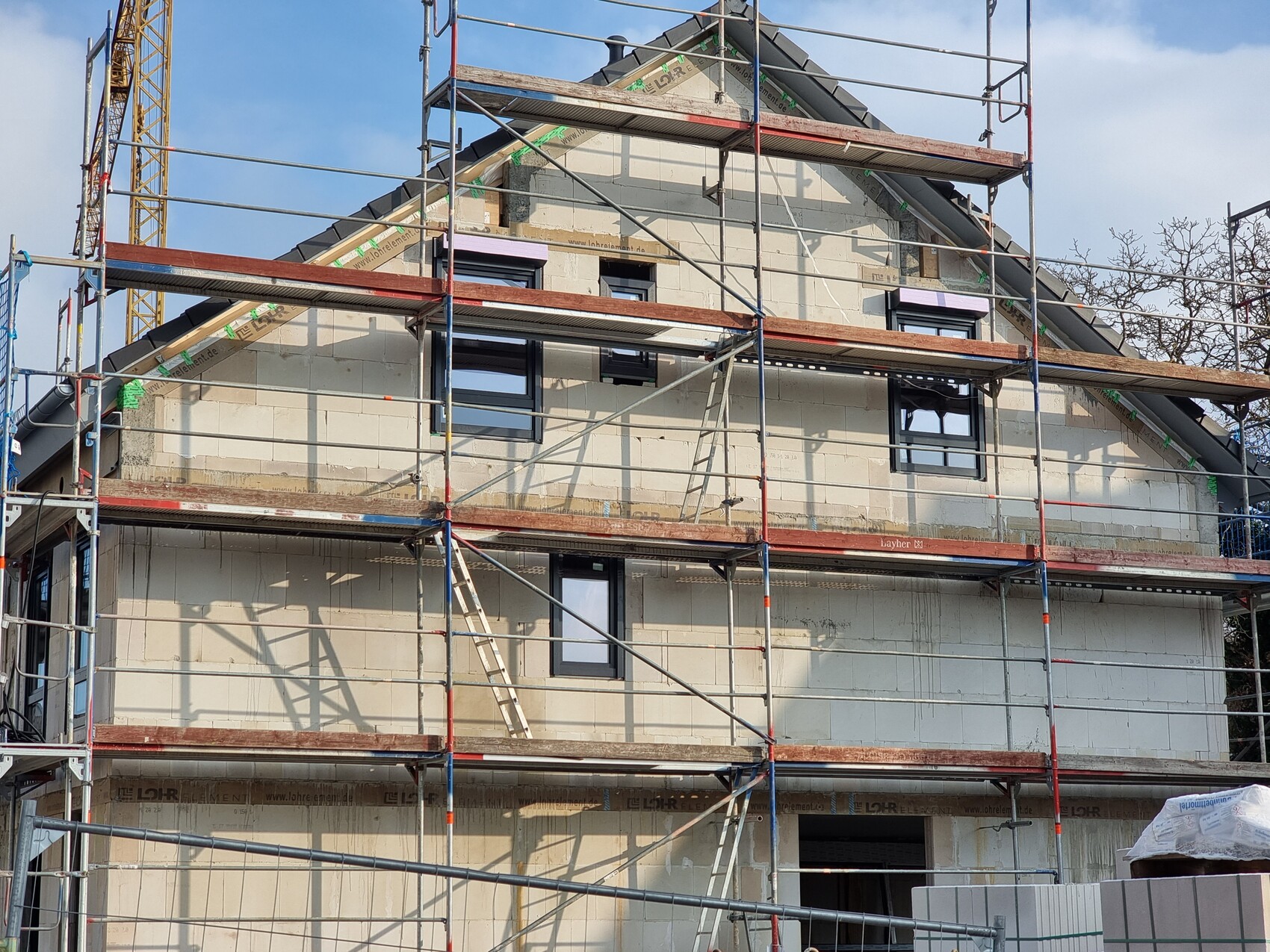 Danke, wünschen ebenfalls ein gutes neues Jahr. In dieser Woche waren auch in Schwaigern etwas mildere Temperaturen. Beim Mehrfamilienhaus wurde weiter gemauert. An den Reihenhäusern wurden die noch fehlenden Fensterbänke montiert, der Sockel abgedichtet und mit dem Trockenbau begonnen. Ich fahre später vorbei und kann ein paar Bilder nachreichen. Leider wird es kommende Woche bereits wieder kälter.