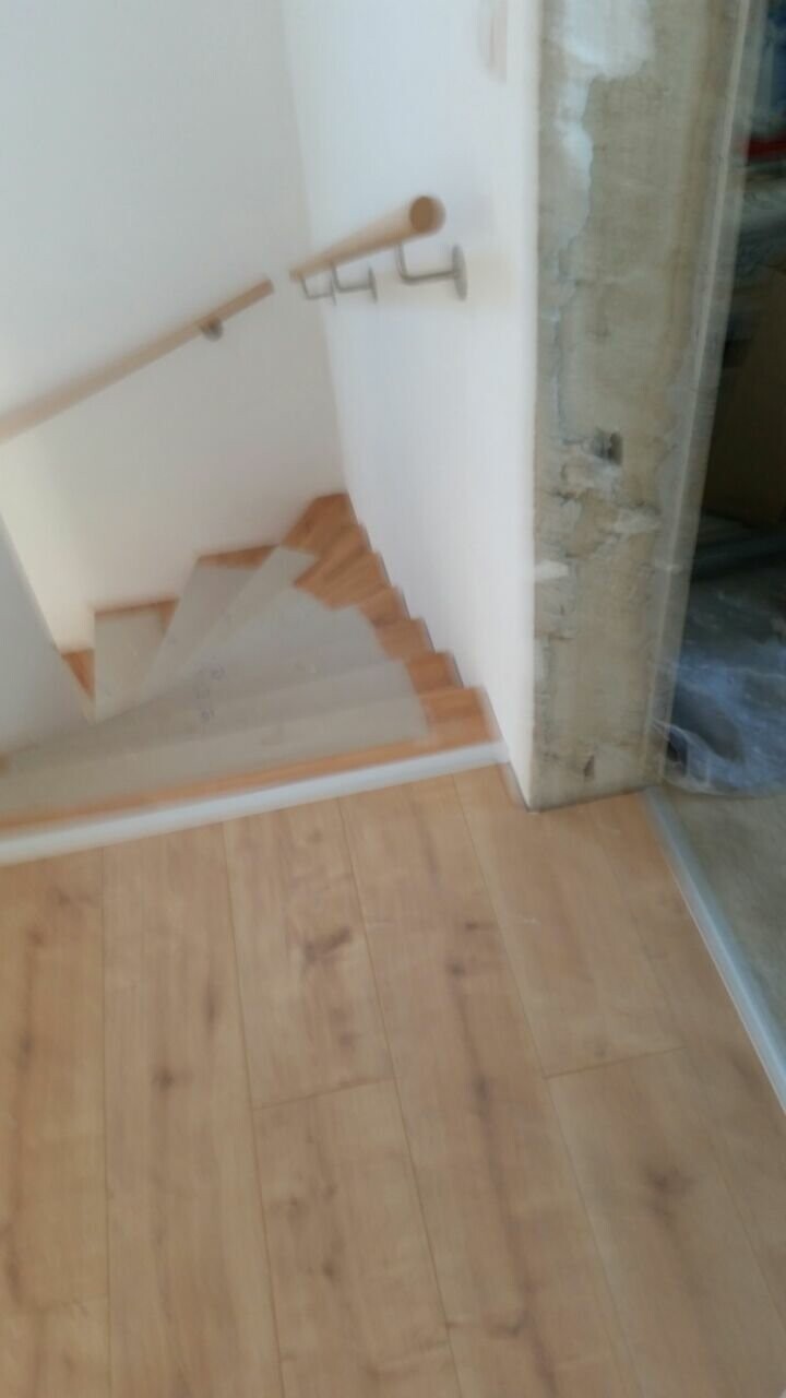 D.h. wenn ich mir die breite der Brüstung wegdenke ist die Treppe ca. 2m breit. Sieht auf den ersten Blick nicht unbequem aus.Für uns vollkommen OK Der Ikea Pax Schrank hat es darauf nach oben geschafft und unser 2 1/2 jähriger klettert auch relativ sicher hoch und runter.