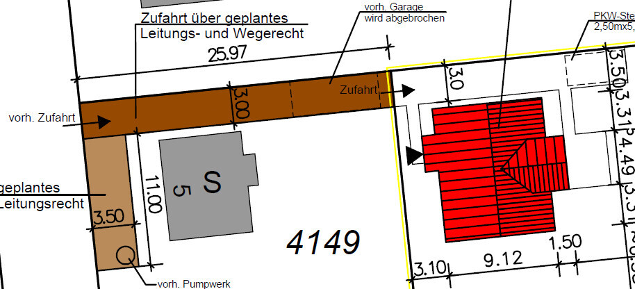 (1) Wir bauen ein Einfamilienhaus auf einem Hinterliegergrundstück