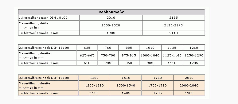 Für Standardtüren gibt es auch Standardrohbaumaße: