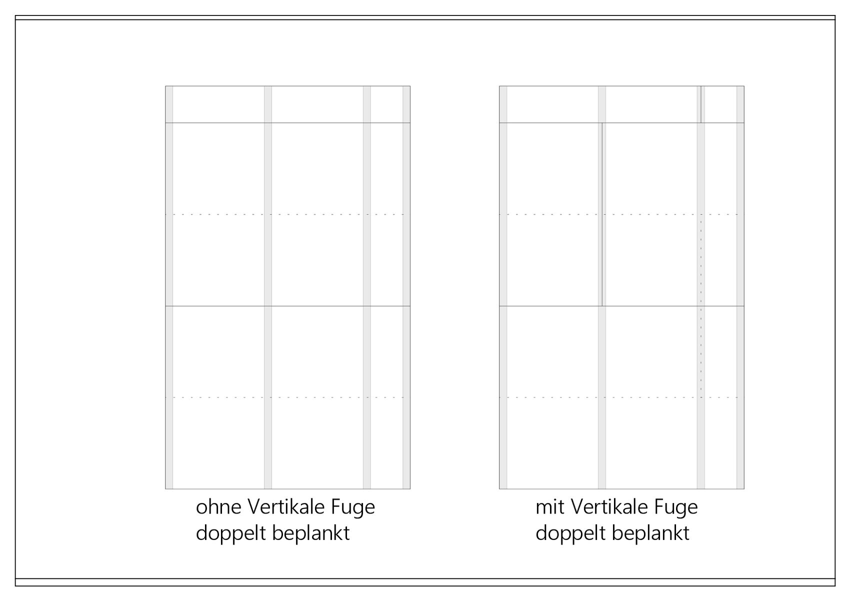 wenn ich eine Trockenbauwand von nur ca. 1,70m breit und 2,75m hoch habe und diese doppelt beplanken möchte. Kann ich dann einfach 2,00m Gipskartonplatten benutzen und diese jeweils bei der 2ten Schicht um die hälfte versetzte in der Horizontale oder muss ich zwingend auch eine Vertikale Fuge dabei haben? Ich habe mal eine Skizze angefertigt vllt. ist es dann verständlicher.
