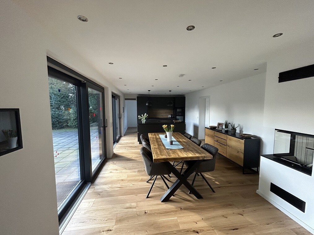 So, wir haben die Kernsanierung durchgezogen, erstes Halbjahr 2022 das OG neu gemacht, mit Sack und Pack nach oben gezogen, und dann im zweiten Halbjahr das EG gemacht. War ein Mammutprojekt sowie eine harte Bewährungsprobe für die Familie - 1 Jahr lang Komplettbaustelle. Haben die Schnauze vom Bauen erstmal voll 😉 Keller und Außenanlagen stehen noch aus, aber man braucht ja noch Ziele im Leben :-)