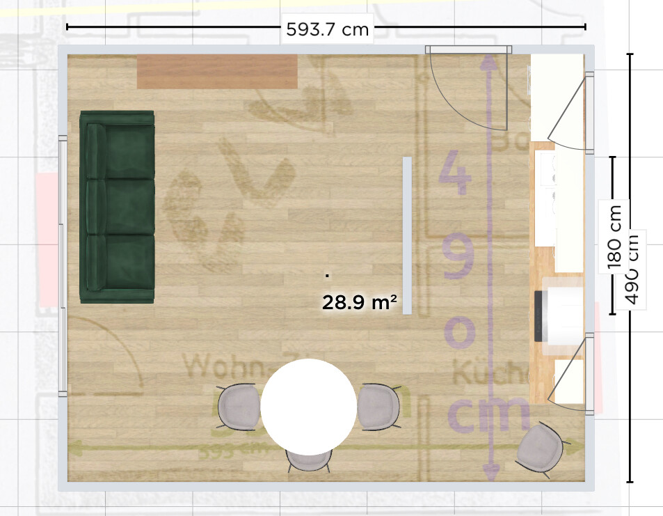 so, dass die Couch Richtung Westen blickt.In diesem Fall müsste dann ja der TV vor das Fenster, das wäre nicht meine favorisierte Lösung. Danke trotzdem auch Dir für Deine Anregungen, insbesondere in Hinblick auf die größerer Küche. Wie gesagt haben wir uns da auch nichts allzu großes vorgestellt, aber aktuell gibt es nichtmal eine freie Arbeitsfläche. Das Fensterbrett wird derzeit dafür "missbraucht", was auf Dauer eben nicht so bleiben soll 😉Ähnliche Themen