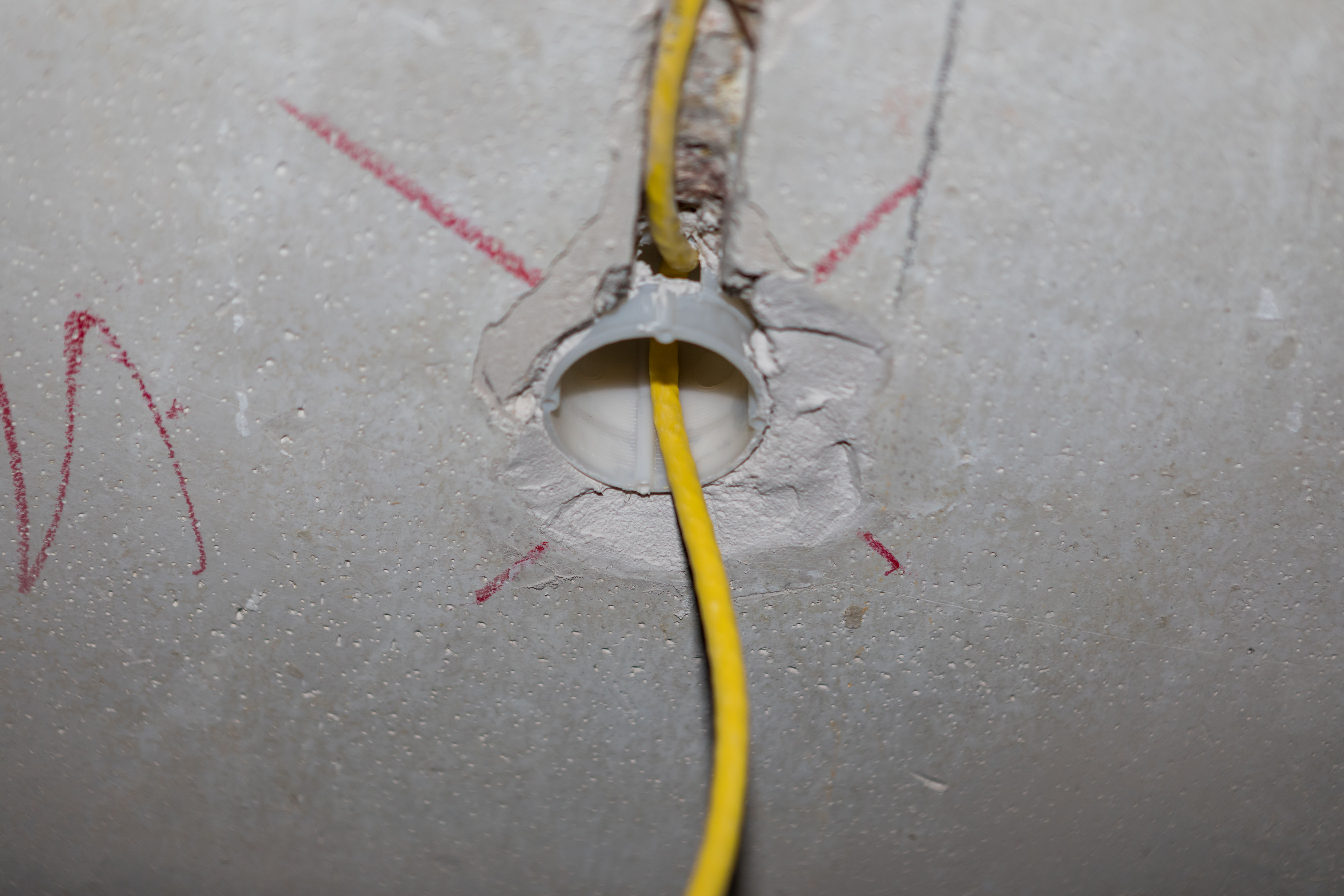 Also wir stehen zur Zeit vor derselben Herausforderung und das Bohren eines tiefen Lochs in die Betondecke war für den Elektriker kein Spaß (dreimal kein Spaß, um genau zu sein). Aber ich glaube es ist die beste Lösung, eine tiefe Unterputzdose einzubauen, so dass man mehr Flexibilität hat. Jetzt sieht es so aus: