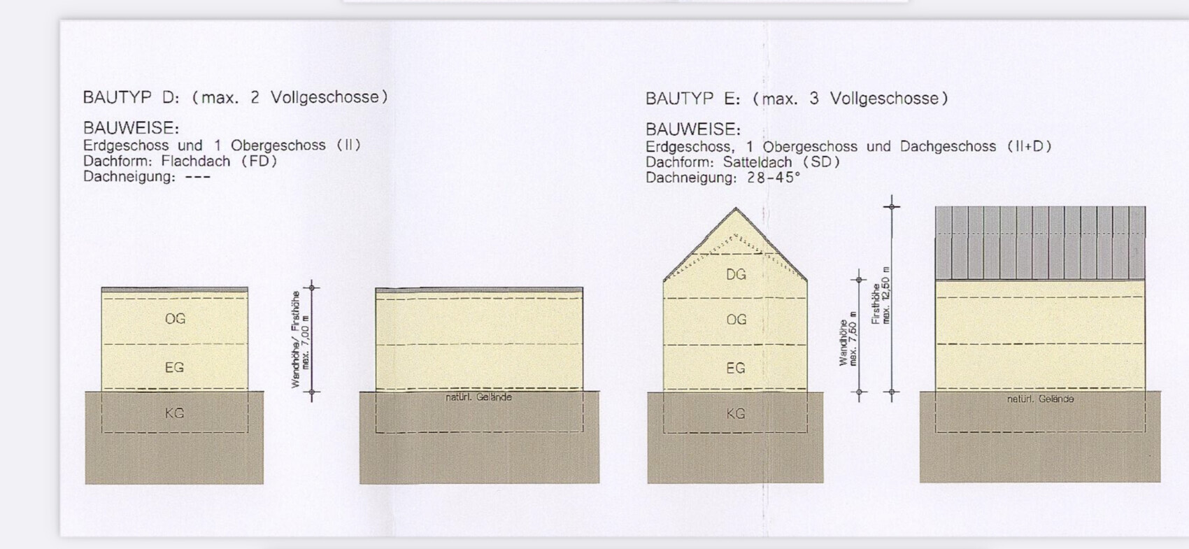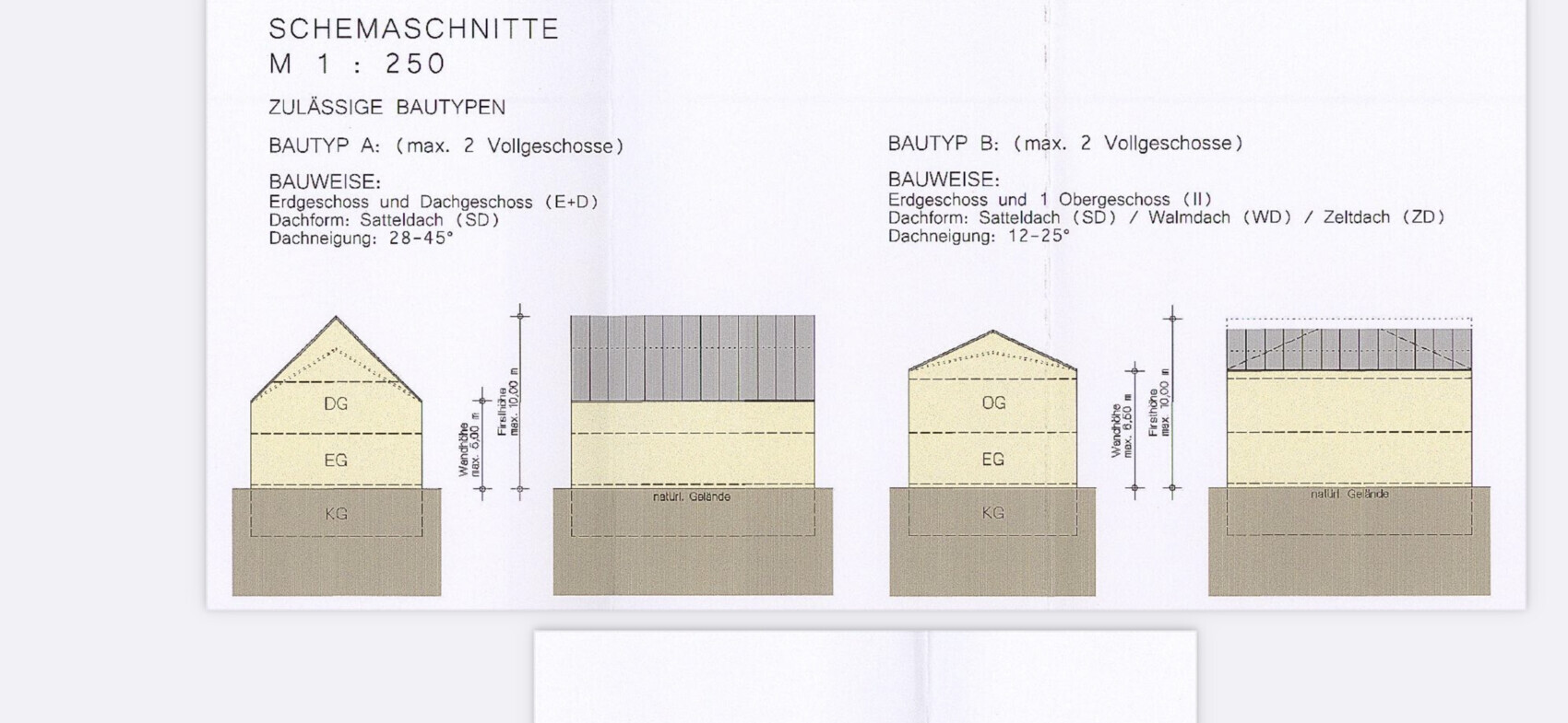 Das wäre dann Bautyp B im unten stehenden Bild. Im Bebauungsplan steht nur II mit Kniestock bis 0,5 Meter.