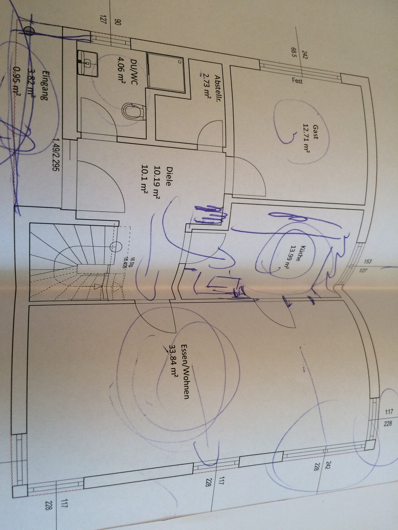 Bezüglich der Küche sehe ich aktuell nur die Variante, das Haus Breiter zu machen. Das käme uns ja insgesamt auch eher entgegen .